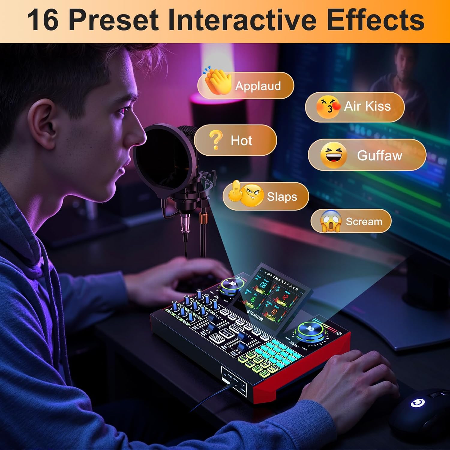 【Customizable Sound Effects & Voice Control】Take full control of your sound with customizable settings for bass, treble, reverb, pitch, and more. Plus, the soundboard offers 16 built-in sound effects, like applause and laughter, to make your streams more engaging and entertaining.