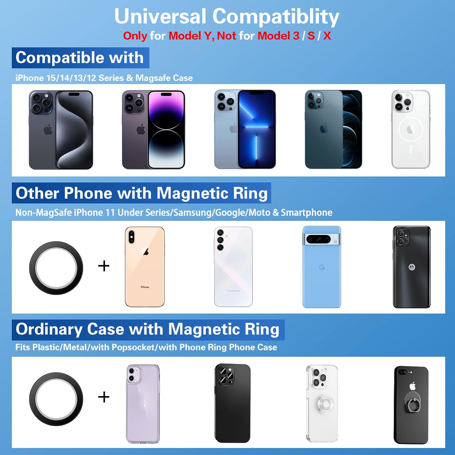 Universal Compatibility: This model y phone mount can directly fix for iPhone 16 15 14 13 12 Pro Max/Pro/Plus/Mini, but considering that some smartphones and cases don’t have mag safe function, we provide extra 2 magnetic rings, you just need to stick it to the back of your phone/case, then it can be attached to the mount quickly and accurately