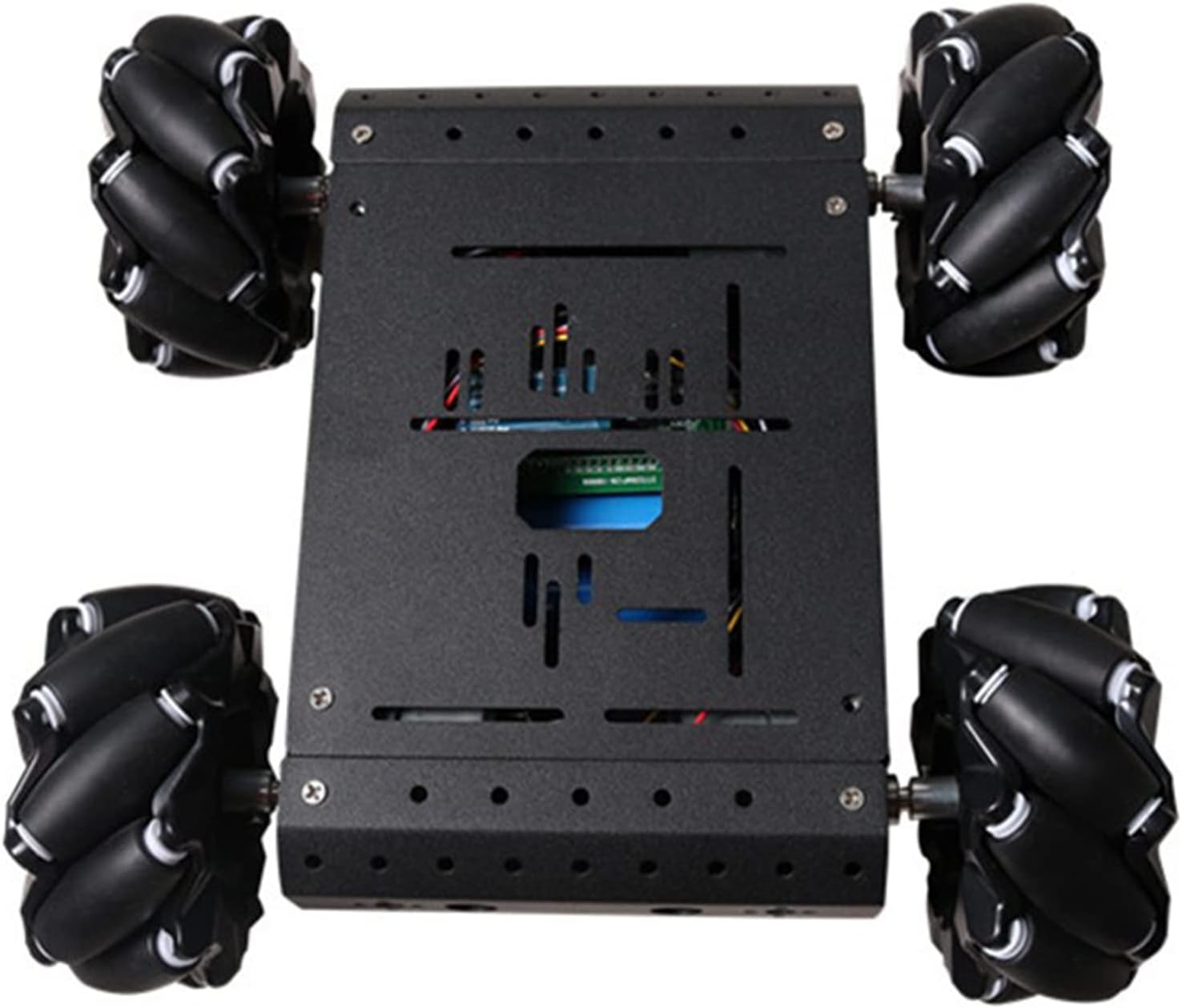 - The robot chassis is equipped with 4pcs 96mm omnidirectional mecanum wheels, allowing your robot to not only move forward and backward, but also left and right. Great for tight spaces;