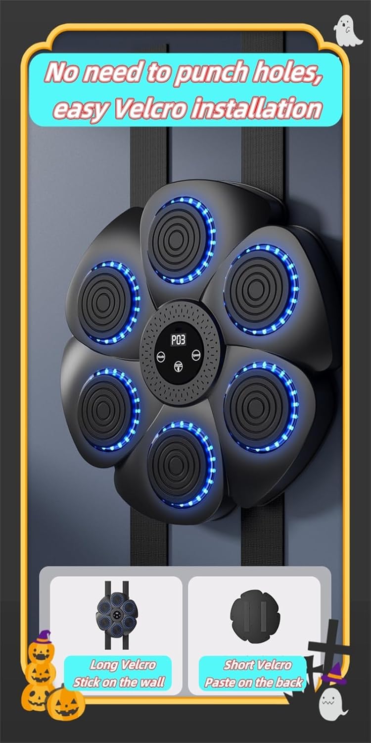 【Multiple Adjustable Modes And Speeds With Led Light Sync】: This Smart Music Boxing Machine Offers Multiple Modes And Multiple Speed Settings To Customize Each Session. Paired With Led Lights That Pulse With The Music, It Turns Any Space Into An Engaging Boxing Training Environment To Improve Reaction Time, Coordination And Rhythm. Perfect For Wall-Mounted Boxing At Home Or Family Entertainment, It Makes Every Boxing More Exciting And Motivates Little Ones To Reach New Fitness Milestones