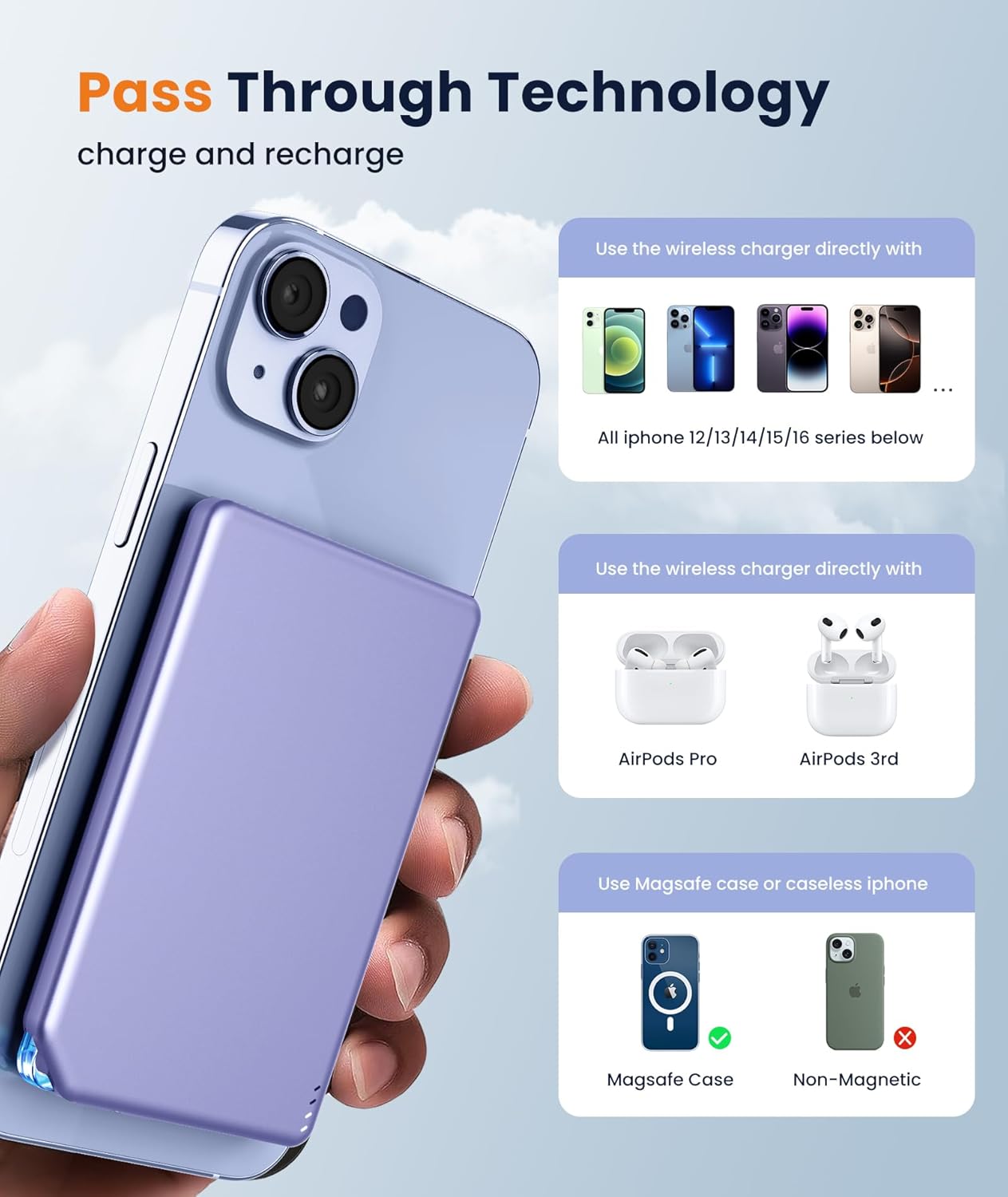 2025 Latest Version for MagSafe Portable Power Bank: This 5000mAh wireless power bank provides reliable backup charging for your iPhone or other USB devices.