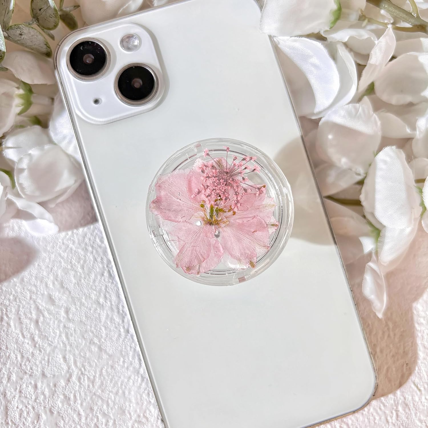 About the product: High-quality, convenient accessories designed to enhance your smartphone experience. Not only is this phone handle practical, it also adds a touch of elegance to your device with its rare dried flower design. The dried flower phone grip is designed with high elasticity to ensure safe and comfortable holding of the phone and prevent accidental slips and falls. Its durable structure ensures long-lasting use, making your daily use very convenient without worrying about the safety of your phone. This unique phone handle features dried flowers that add a pleasing aesthetic to your phone. The design is not only eye-catching but also adds a touch of elegance. Stand out from the crowd and express your personality with this charming accessory. Whether you’re taking selfies, watching videos, or browsing the web, the Dried Flower Phone Grip provides a stable hands-free experience. With this handy accessory, you can easily prop your phone up on any flat surface for a comfortable viewing angle in both landscape and portrait modes. Add a touch of glamor and functionality to your smartphone with the Dried Flower Phone Grip.