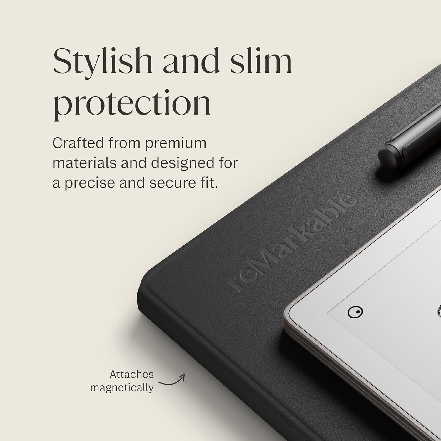WHAT’S IN THE BOX – You’ll find reMarkable Paper Pro, a digital notebook for unprecedented paper-like writing with 11.8” Canvas Color display; Marker Plus, the reMarkable pen with built-in eraser; 6 spare Marker tips; Book Folio, a stylish protective cover in premium black leather; and USB-C cable.