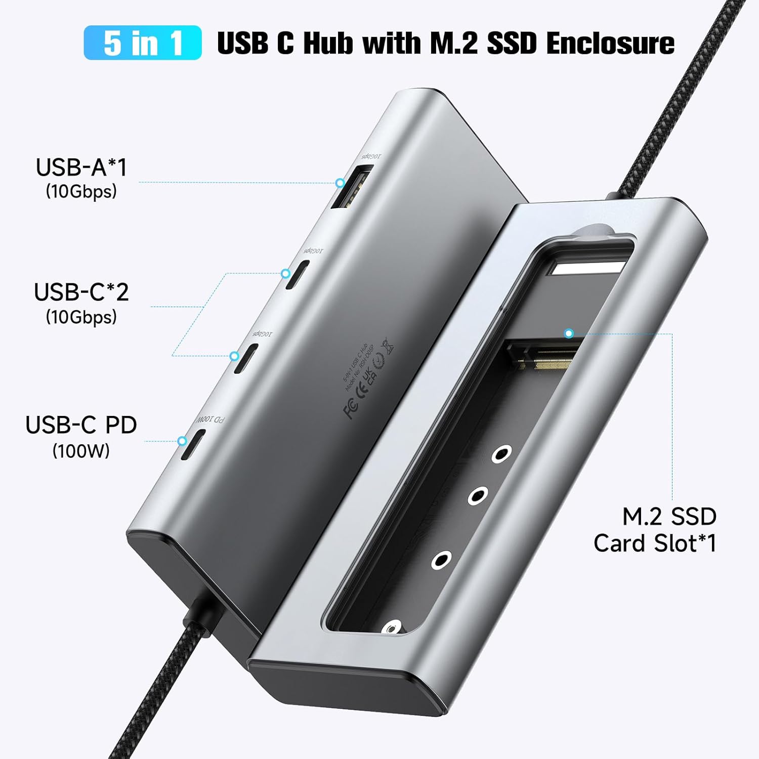 Hybrid 5-in-1 Expansion: The dual-purpose design of USB-C hub and M.2 SSD enclosure brings a whole new experience to your. Expand your laptop’s connectivity with 2 USB-C 10Gbps ports, USB-A 10Gbps port, 100W PD charging, and a dedicated slot for M.2 NVMe/SATA SSDs