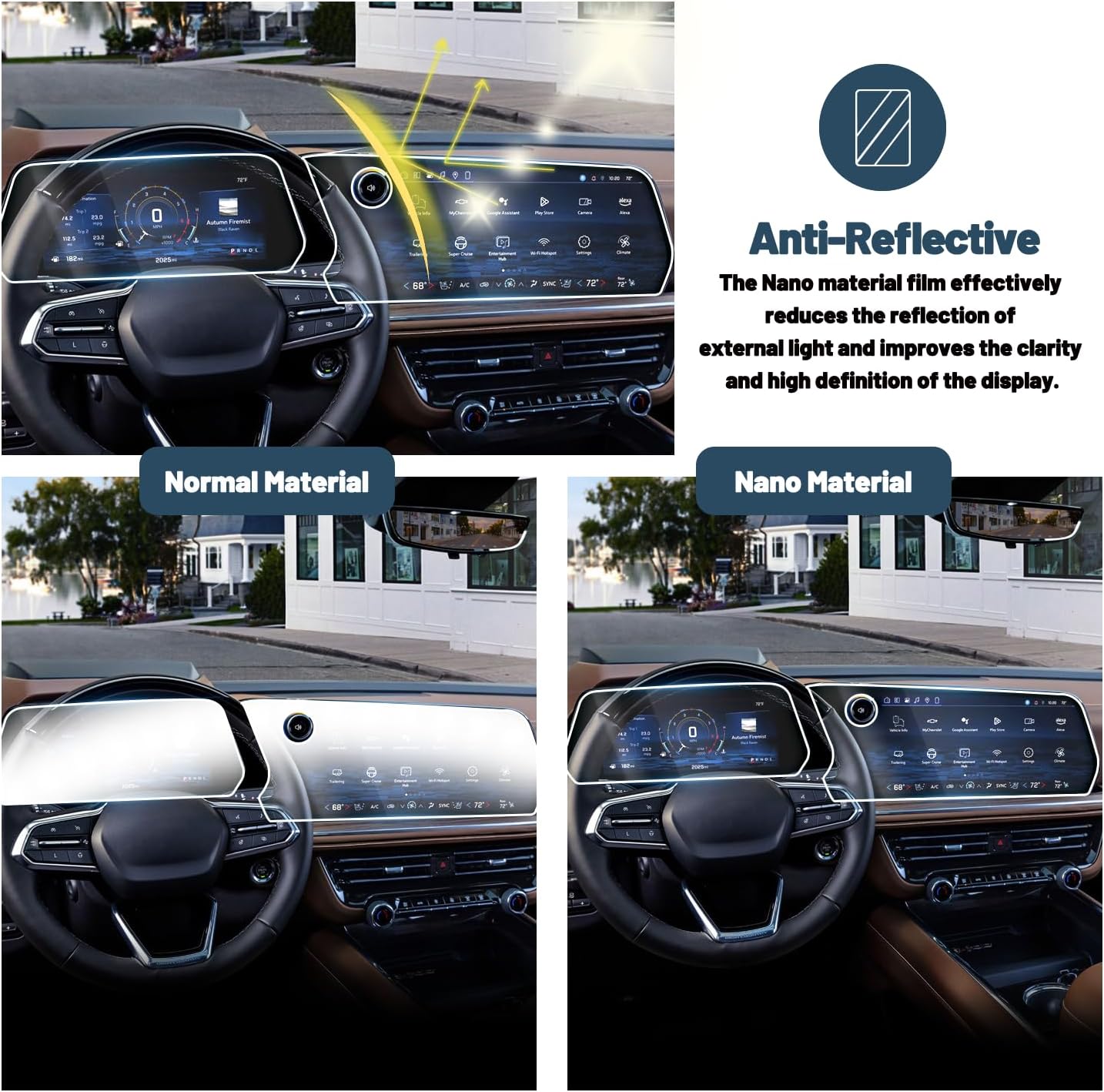 Multiple Defense Technology:The Chevy Suburban 2025 accessories have 0.33mm Premium Screen Protector have 5-layer coatings of the protector Reinforced ,it’s twice as much strength as non-tempered alternatives and effective protection, against hurt Chevy Suburban High Country 17.7-inch screen from daily using