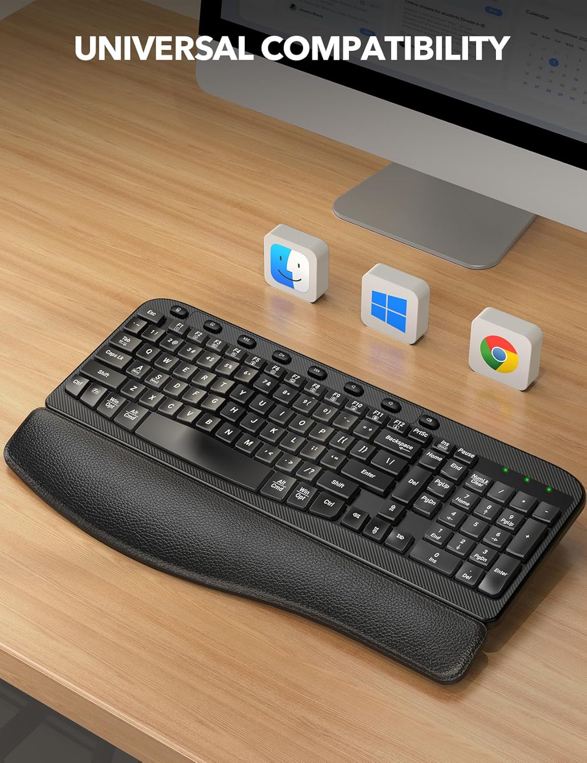 Our ergo wireless keyboard optimizes key curves, reducing wrist strain for comfortable typing. The familiar design ensures a seamless transition.