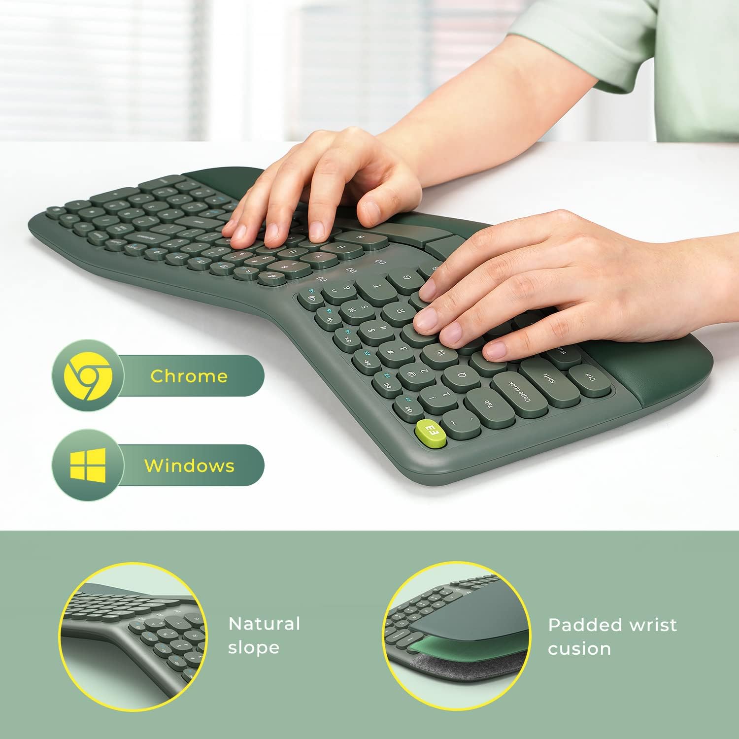 [Ergonomic Comfort Design] – The elegantly curved unibody design allows your wrists to rest naturally on the keyboard, reducing strain on your hands, wrists, and shoulders after extended periods of use. The keyboard is complemented by a contoured mouse that offers a comfortable grip and a secure thumb support, ensuring your fingers are fully relaxed. This upgrade isn’t just about technology—it’s an investment in your health.