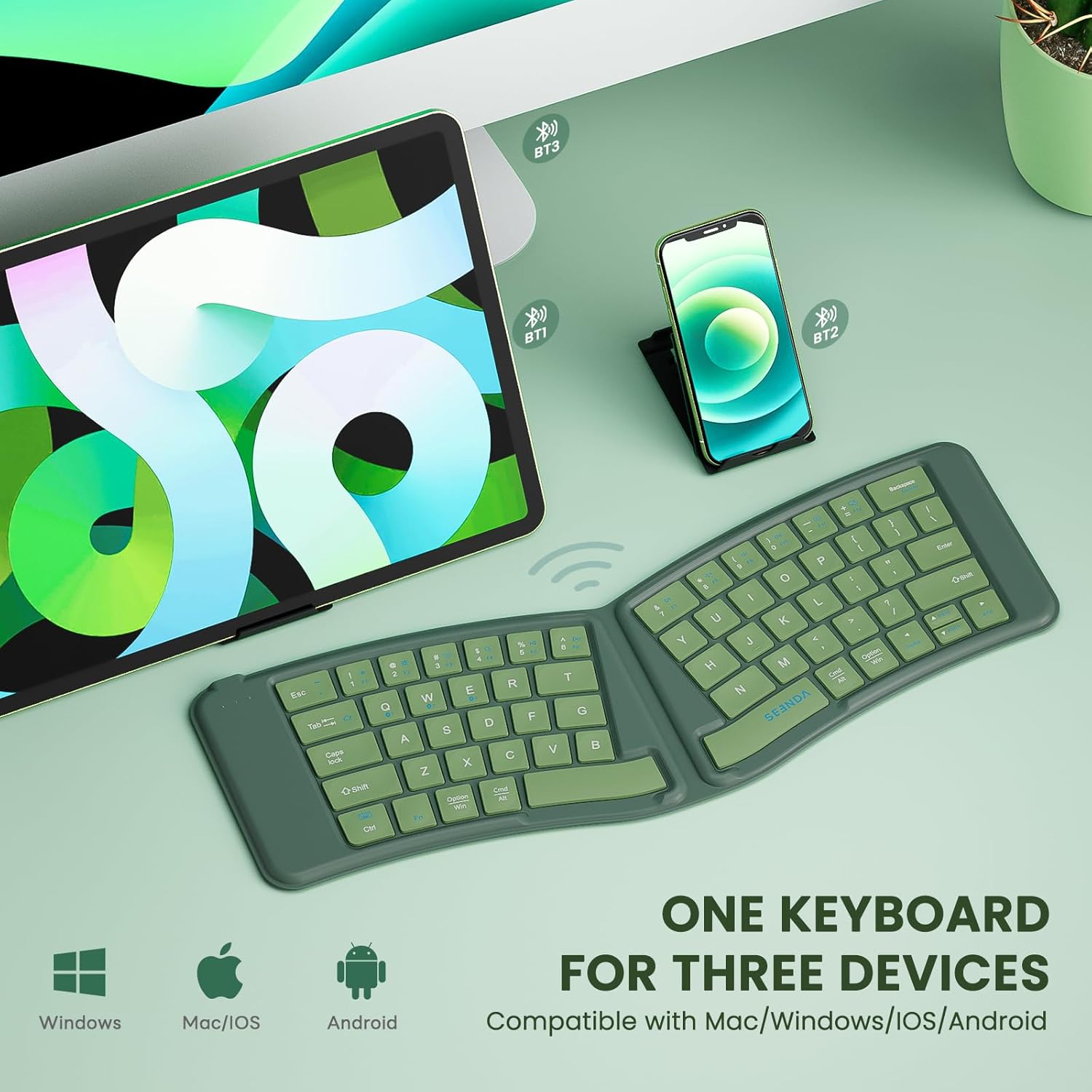 【Multi Device Bluetooth Keyboard】: Boost your productivity with the Seenda foldable keyboard’s triple Bluetooth technology. Effortlessly switch between three devices, be it your iPad, phone, tablet, or laptop, for seamless multitasking and enhanced efficiency.