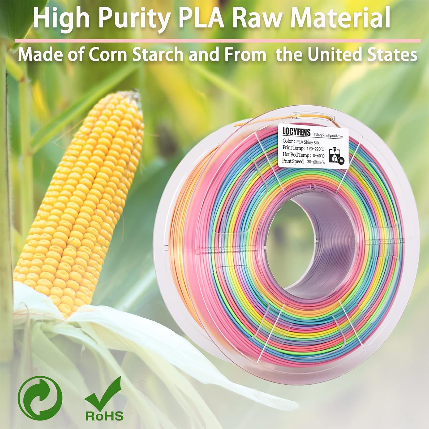 HIGH PURITY PLA FILAMENT – Rainbow PLA raw material is made of corn starch and safe for kids. Perfectly 3d printing with 99% FDM 3d printer and 3d pen.