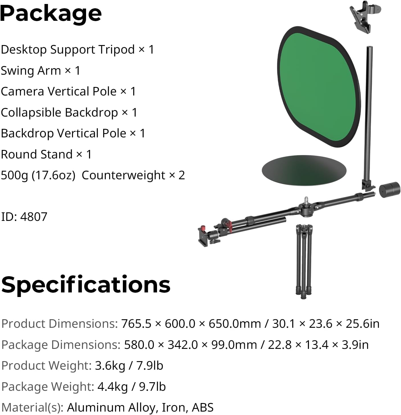 Robust Construction: SmallRig 4807 supports a maximum load of 5kg / 11.02lb on the base and 3kg / 6.6lb on the ball head section. The solid metal construction ensures durability and reliability