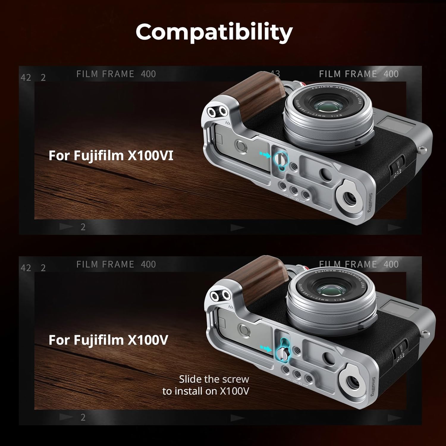 Designed for FUJIFILM X100VI / X100V: SMALLRIG L-shaped grip (Silver) 4804 is custom-designed for FUJIFILM X100VI / X100V camera. After installation, it will not affect the use of the battery compartment, card slot, etc.
