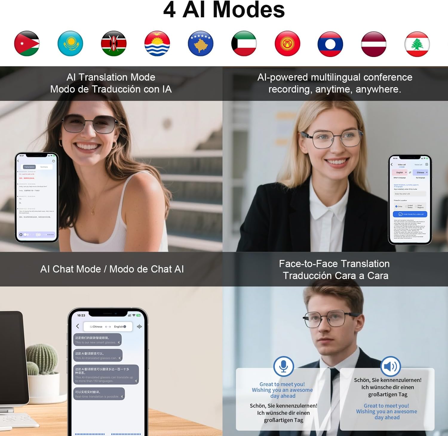【Multi-Mode Translation Suite】These smart AI glasses for men & women can break down language barriers with simultaneous interpretation, face-to-face translation, and live recording across 115+ languages. Ideal for international travel, business meetings, or language learning—capture conversations effortlessly and review recordings later via the app.