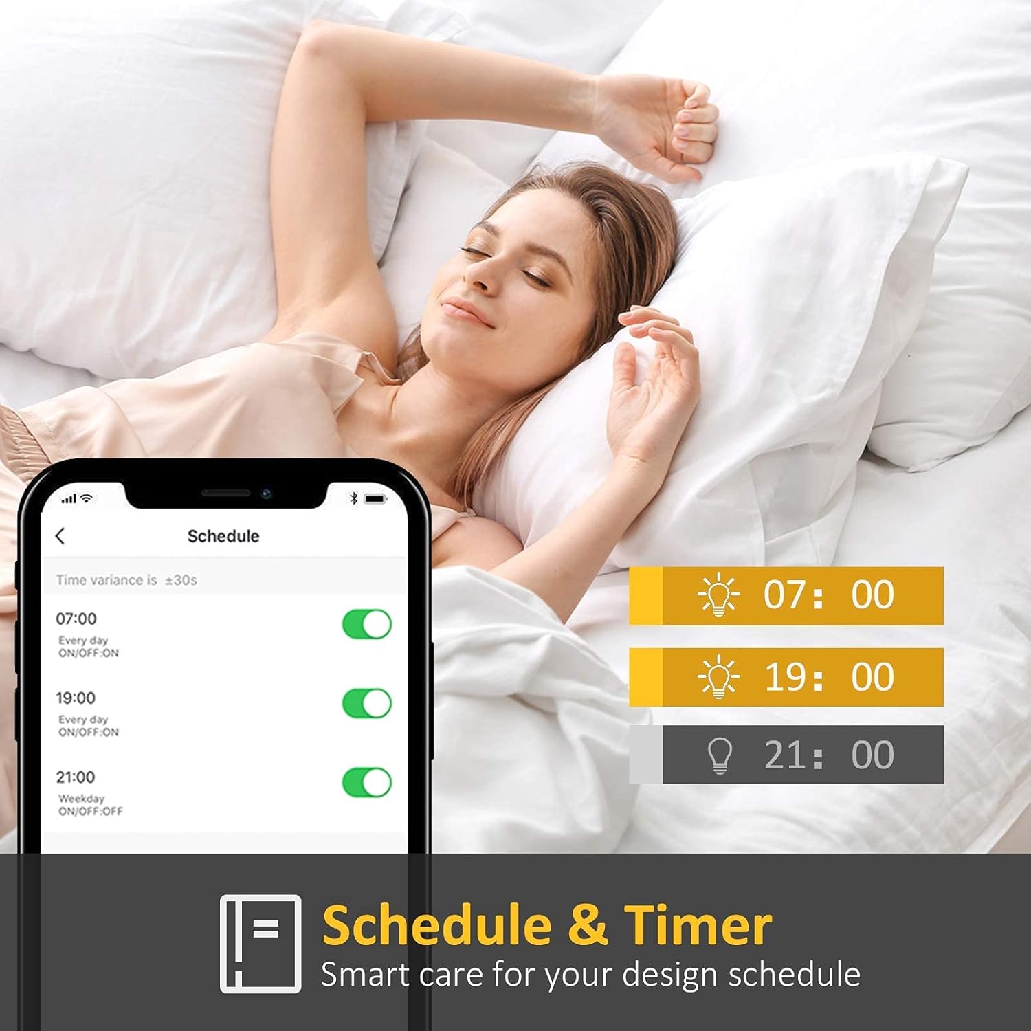 [Smart Timer/Alarm for Different Schedules] You can set alarms via App or Alexa, Google home assistant, Echo for different schedules using the smart bulb as a daily timetable device. Certificated with FCC, Ce, RoHs, and integrated with soft light eye protection, you could apply KHSUIN smart bulbs to different places such as bedroom, living room, kitchen, or occasions such as stage, party, hall, office, entertainment places.