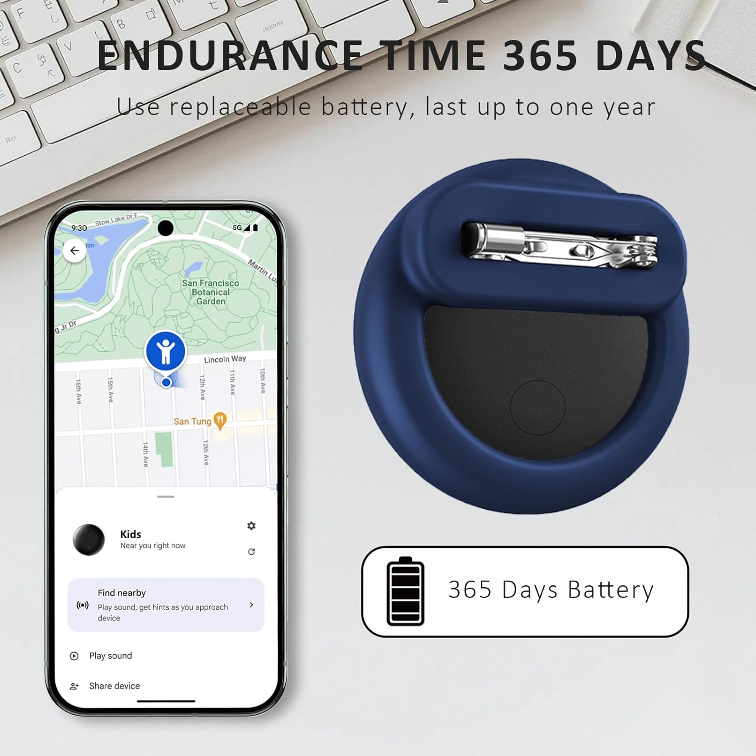 【Stability & Lightness & Comfort】Android kids tracker Crafted from skin-friendly silicone and stainless steel, it’s rust/sweat-resistant and long-lasting. Kids hidden tracker design reduces swaying—eliminating the wobble/hanging of other pin holders. At just 20g and compact, barely noticeable to wear .