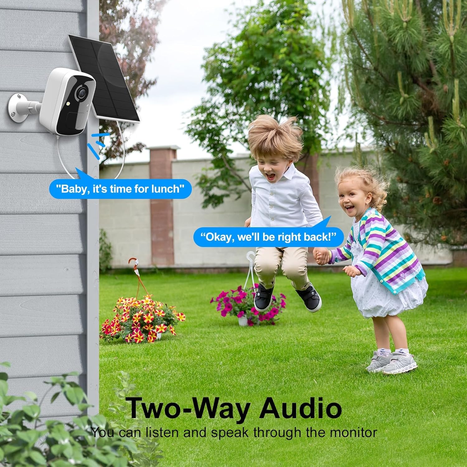 Wide Coverage & Two-Way Audio: The solar camera outdoor wireless uses a 120° wide-angle lens to more fully cover every corner of your home, business, and garage. The monitor and camera have built-in enhanced antennas, which can achieve a stable connection distance of about 100 feet to 130 feet. You can also say hello to family/friends within the monitoring range or scare away intruders through the EseeCloud APP.
