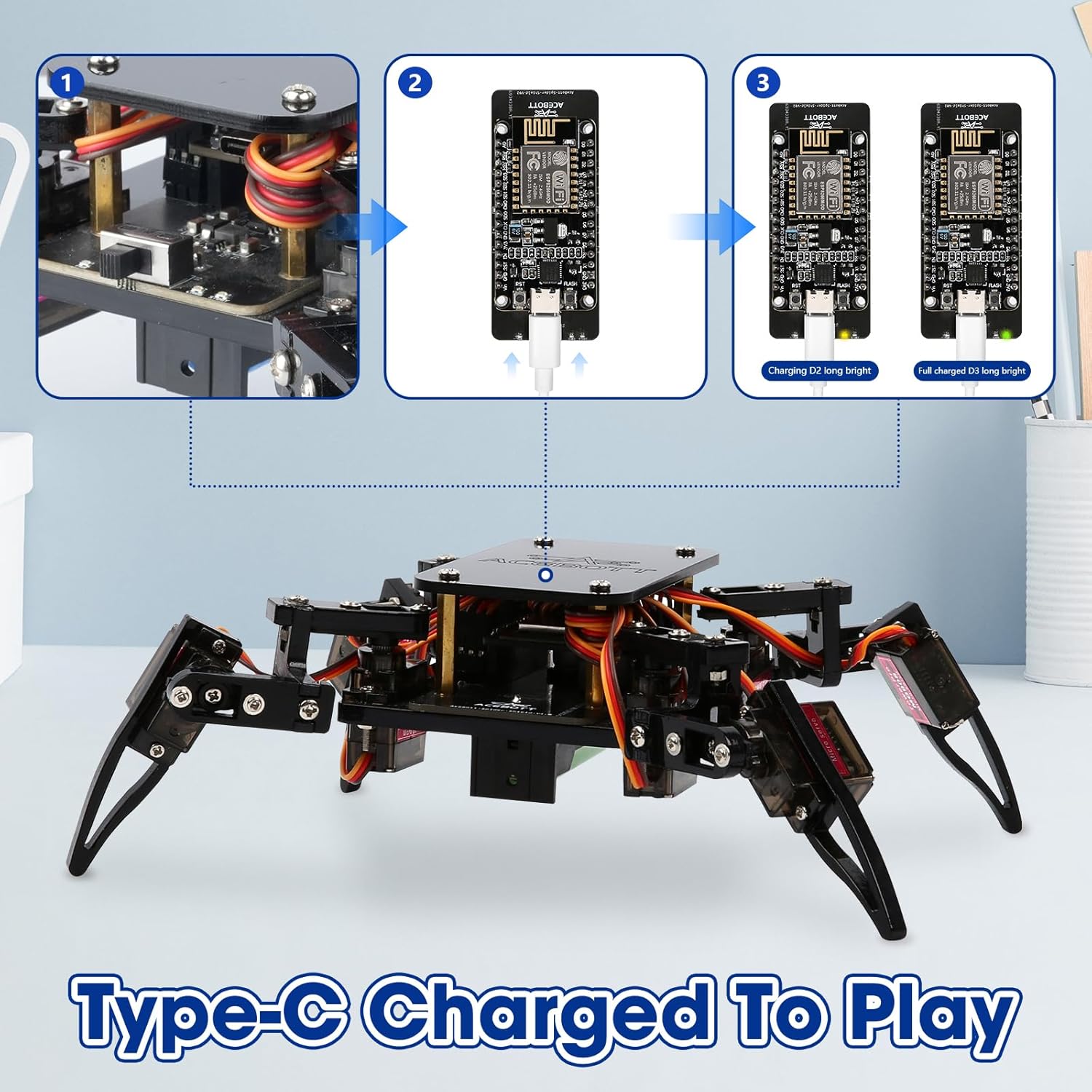 Encourages Early Creativity – Designed for children ages 8 and up, this ACEBOTT cool spider robot build kit is an easy-to-use starter kit, features ESP8266 motherboard controls and customized rudder, also offers educational features, combining engineering, mechanics, and robotics elements, to fully engage with the toy and unwrap creativity.