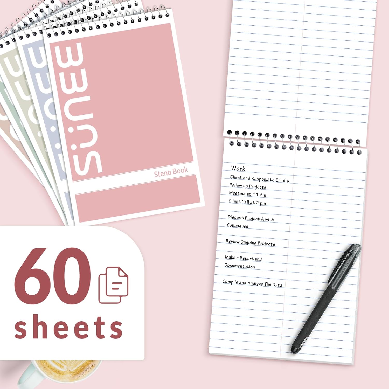 5 Color: Get 5 different colors. Steno Pads provide versatility and convenience for different scenes and needs. Each color represents a unique purpose or topic. It is easy to distinguish and locate your notes and contents.