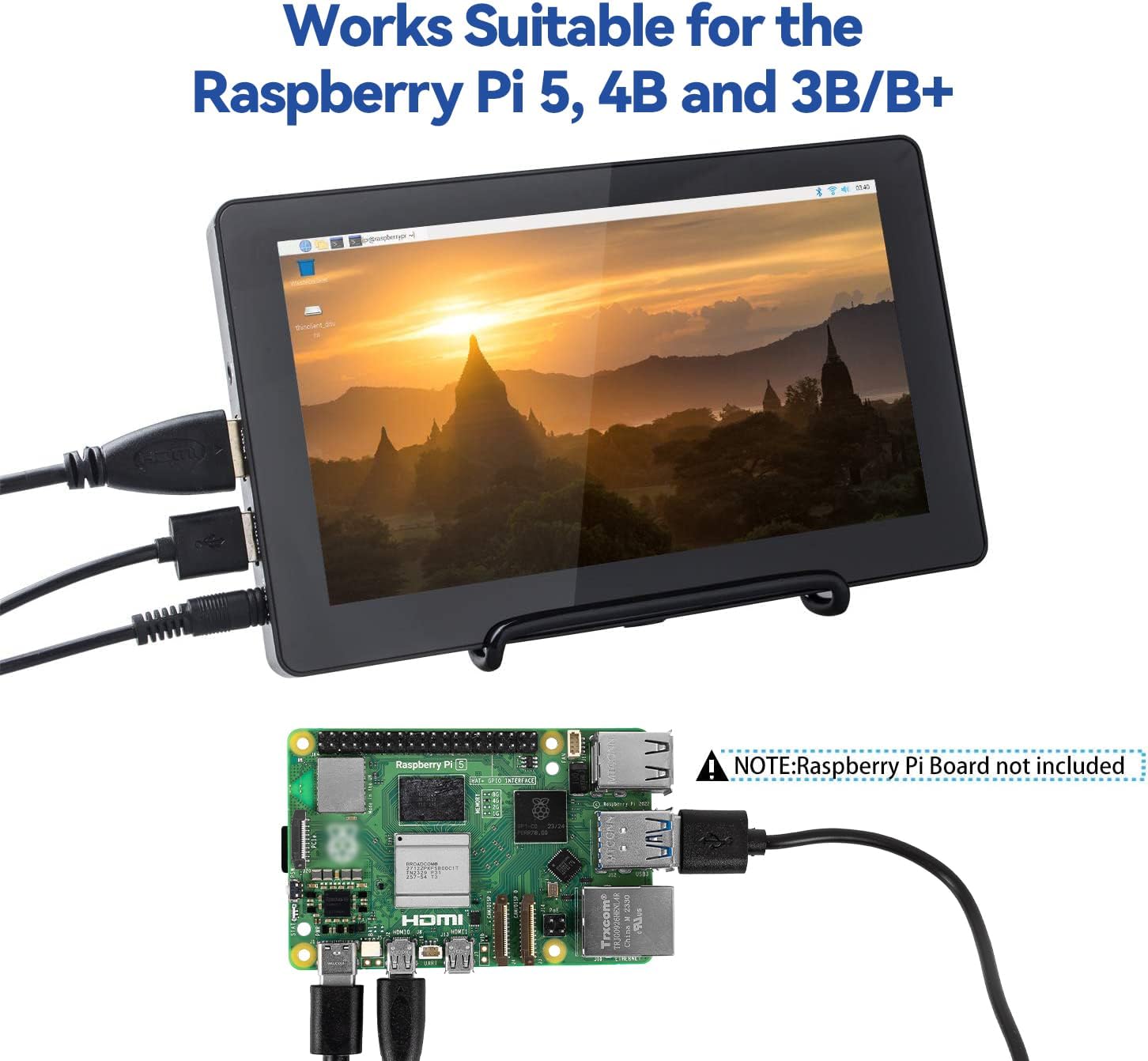 Multi-application – This 7inch display for Raspberry Pi 5 applies to Raspberry Pi devices as well as computers with HDMI interface, supporting Raspbian/ Raspberry Pi 5 400/ Ubuntu/ Kali/ Retropie/ Arduino/ Linux/ Win10/8/7 OS.