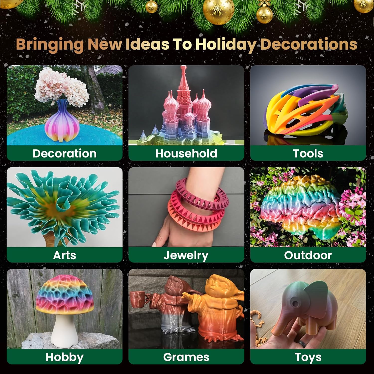 ②【High Quality & Strong Compatibility】 -1.75mm Diameter, Multicolor filaments are very suitable for Christmas and Halloween decorations, and are also very suitable for gift giving. Giving Smooth, Pearly and Unique Touch, Perfectly Compatible with Most of the FDM 3D Printers and 3D Pens in Market, No bubble, No Jamming, No Warping, Easy to Print.