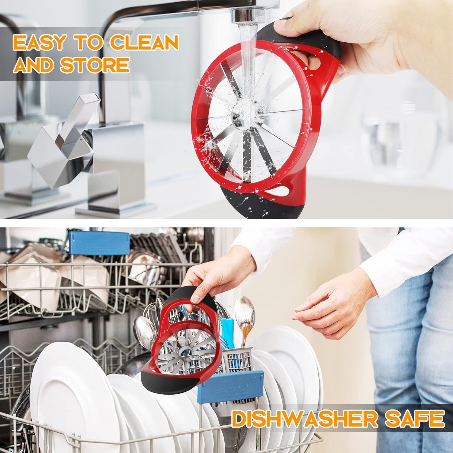 Easy to Clean – Our Apple Cutter Slicer Corer can be cleaned in the dishwasher. Or you can just wash it by hand, right up in a jiffy with a little soap and water. Super easy to clean and Dishwasher Safe!
