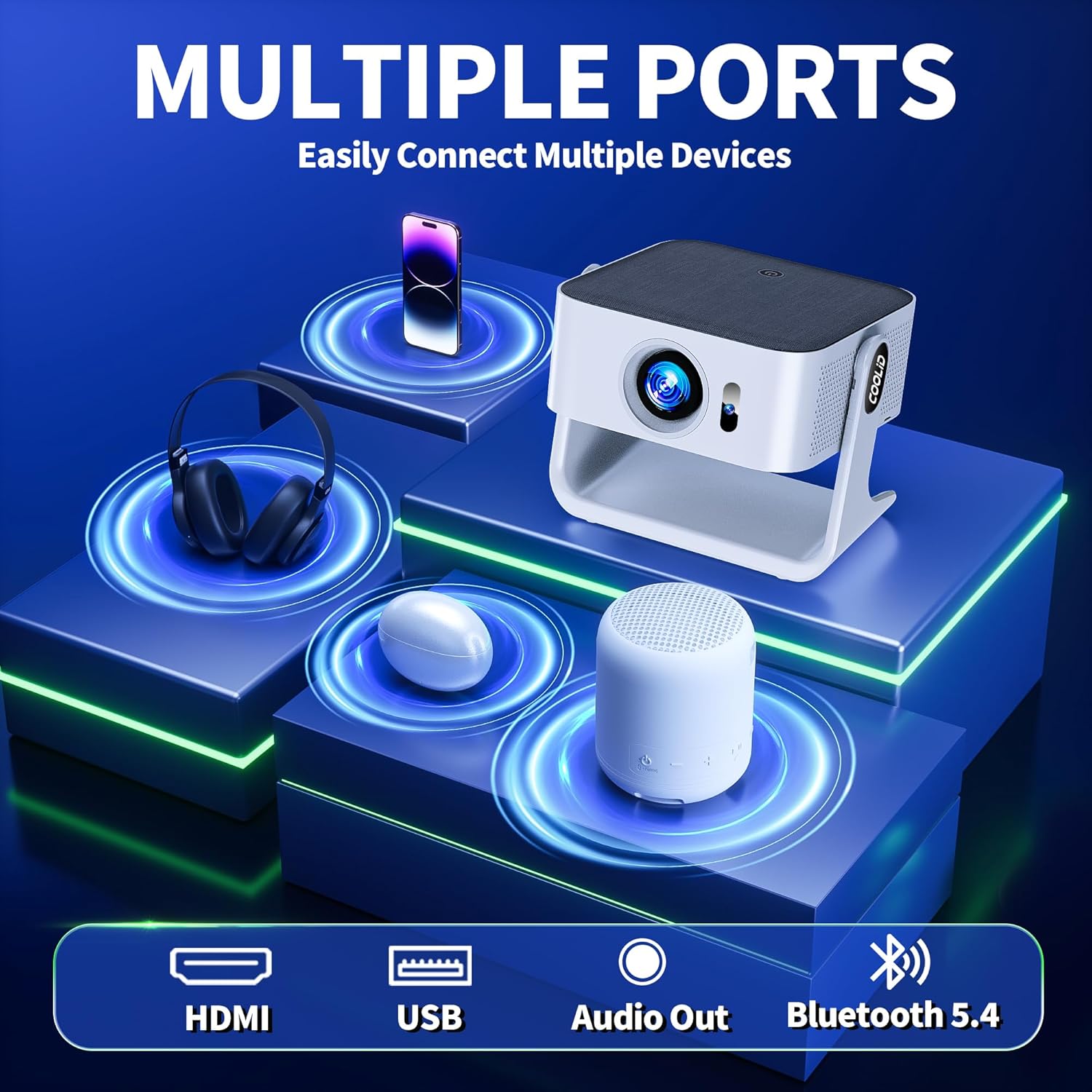 【Immersive Surround Sound】: The Coolid projector features dual Bluetooth 5.2 connectivity and an integrated 360° surround sound system, delivering rich, crystal-clear audio for a fully immersive experience. Enjoy theater-quality sound that puts you right in the action—whether you’re watching movies, listening to music, or gaming