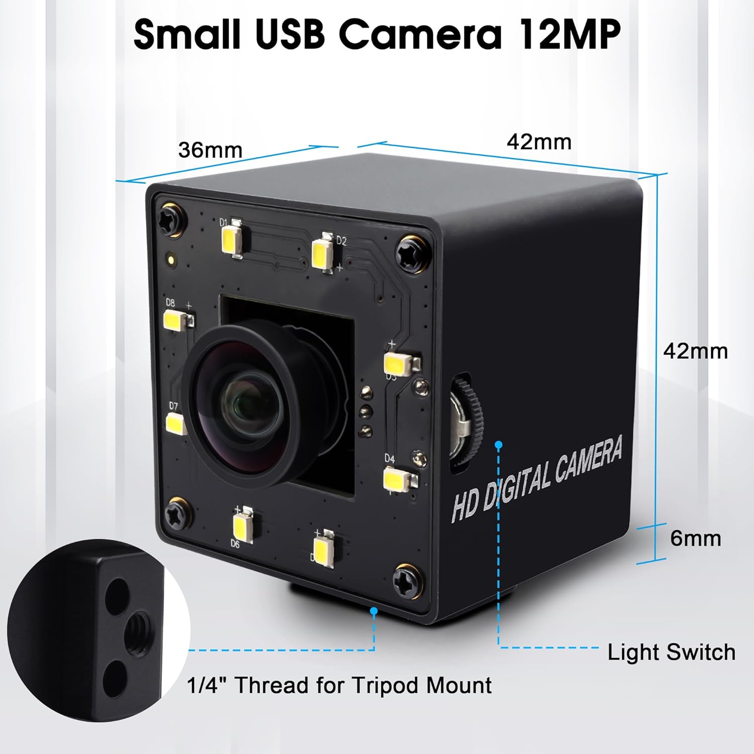 Svpro 12MP usb camera with light, high resolution and high frame rate for video recording,streaming,computer vision,industrial inspection,DIY projects