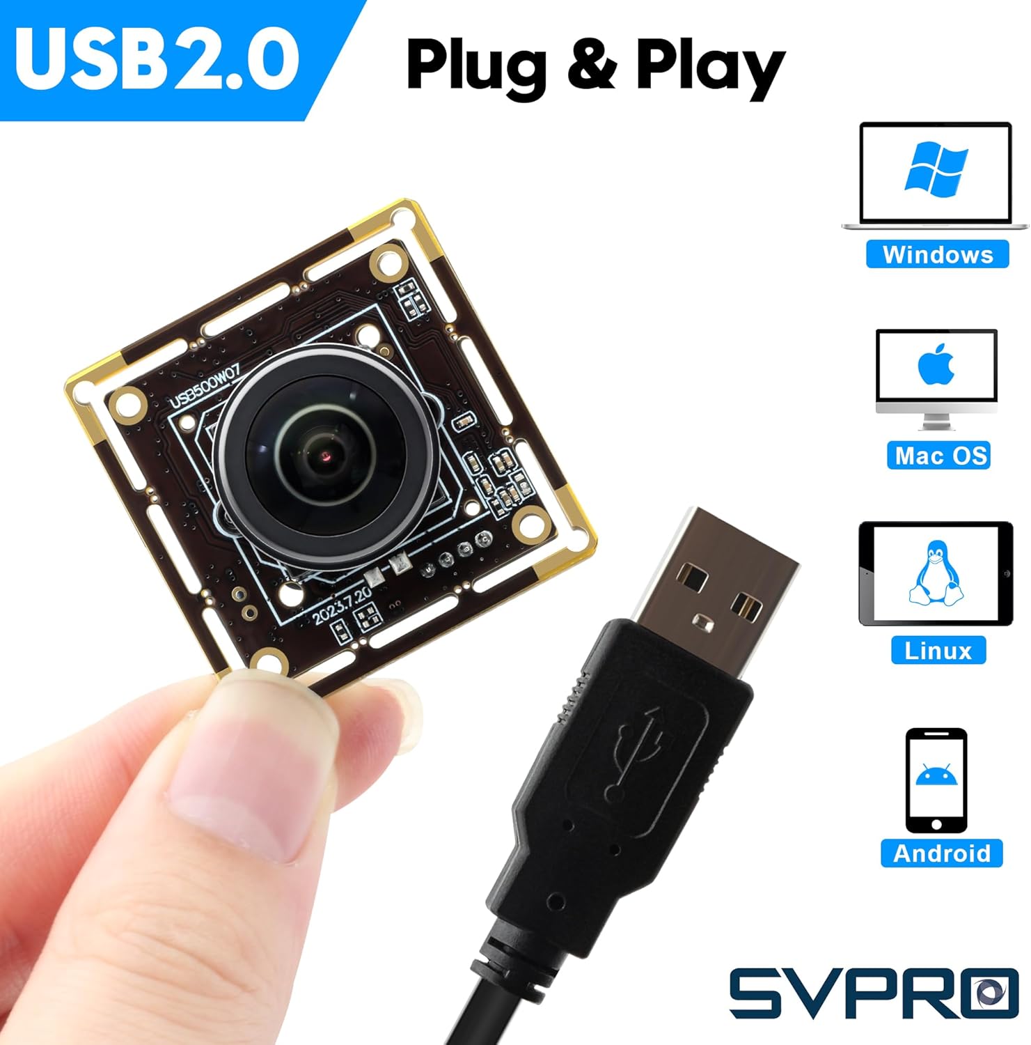 Camera board USB port, uvc plug and play for computer,raspberry pi. No extra driver or software required. Compatible with Windows,Linux,MacOS,Android.