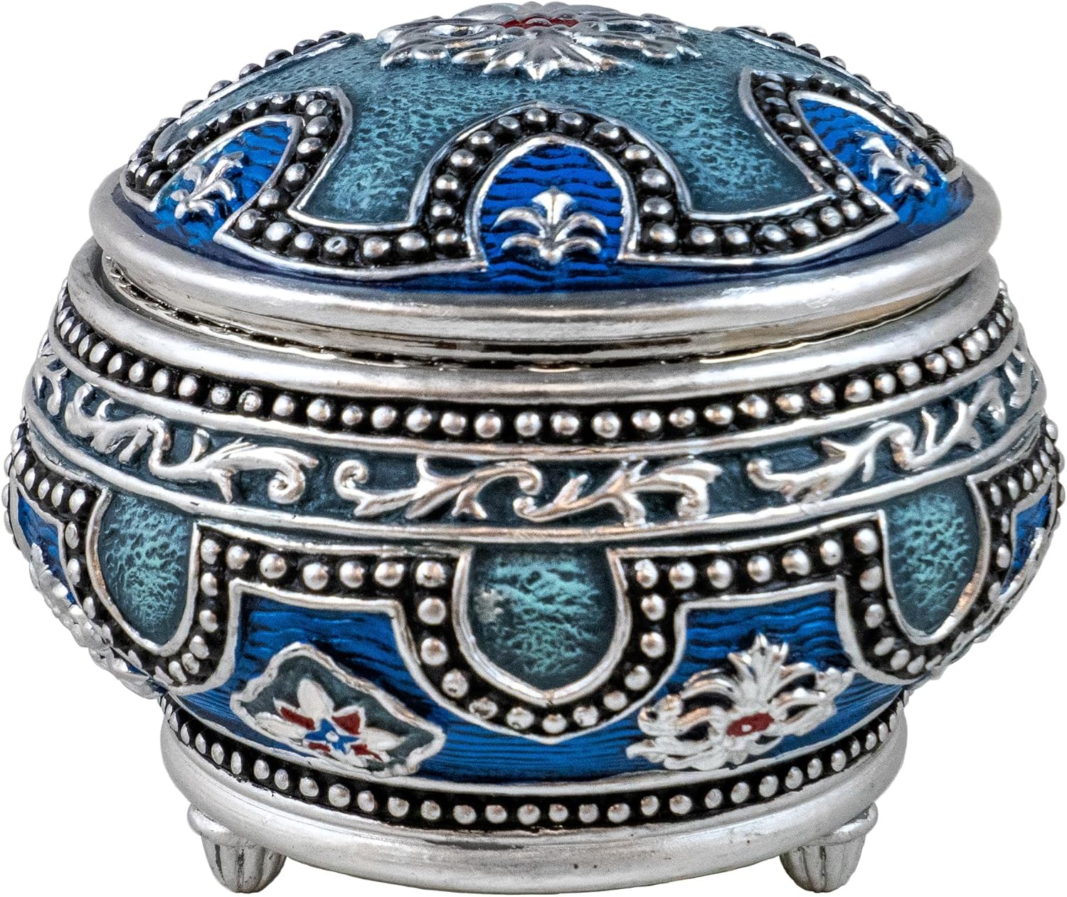 Inside, the trinket box reveals a beautifully detailed white swan, adding a serene and intricate touch to the interior. The exterior features an elaborate design, with intricate patterns that enhance its elegance and sophistication.