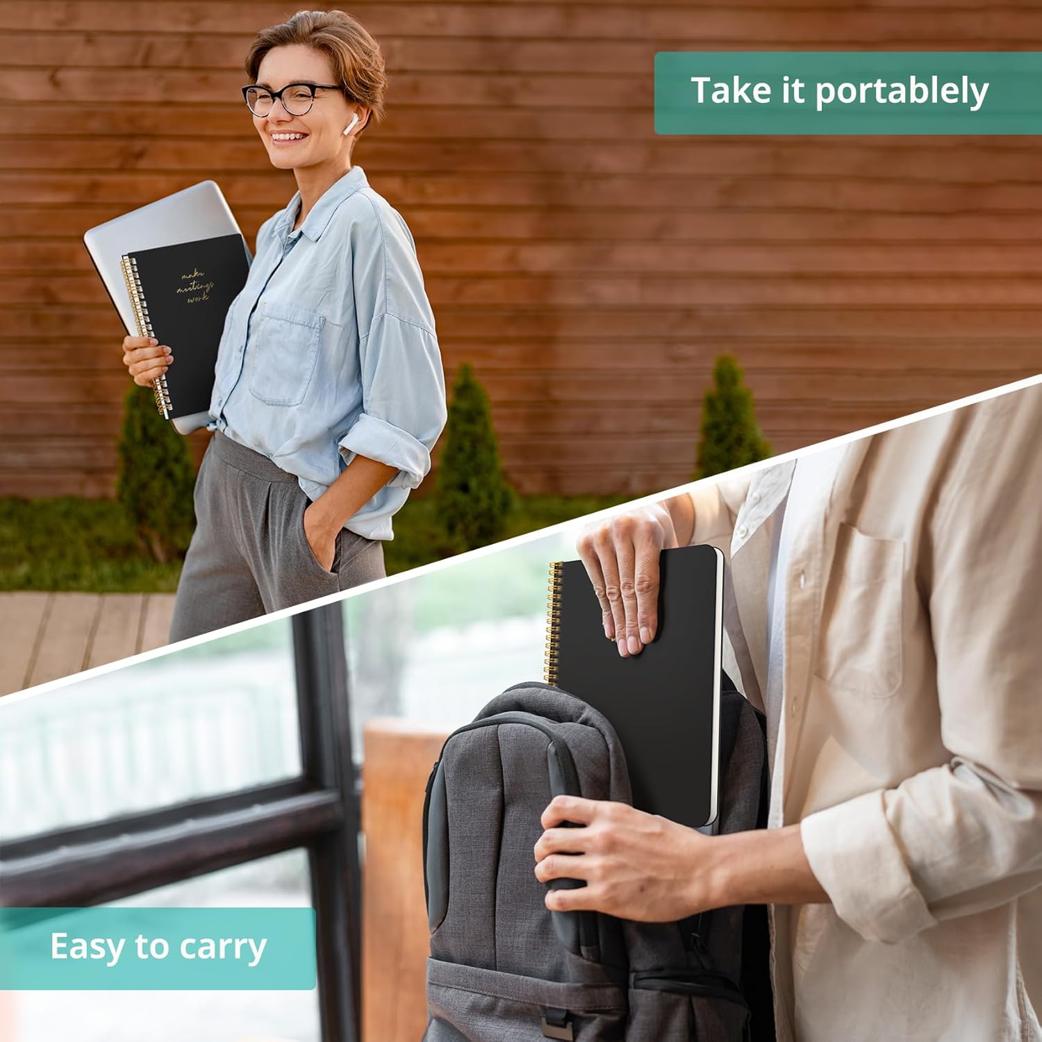 Boost Meeting Efficiency: A meeting notebook helps you manage and streamline meeting details, ensuring discussions, decisions, and action items are accurately captured and organized. It promotes a more efficient workflow, allowing for easy reference and retrieval of information during and after the meeting.