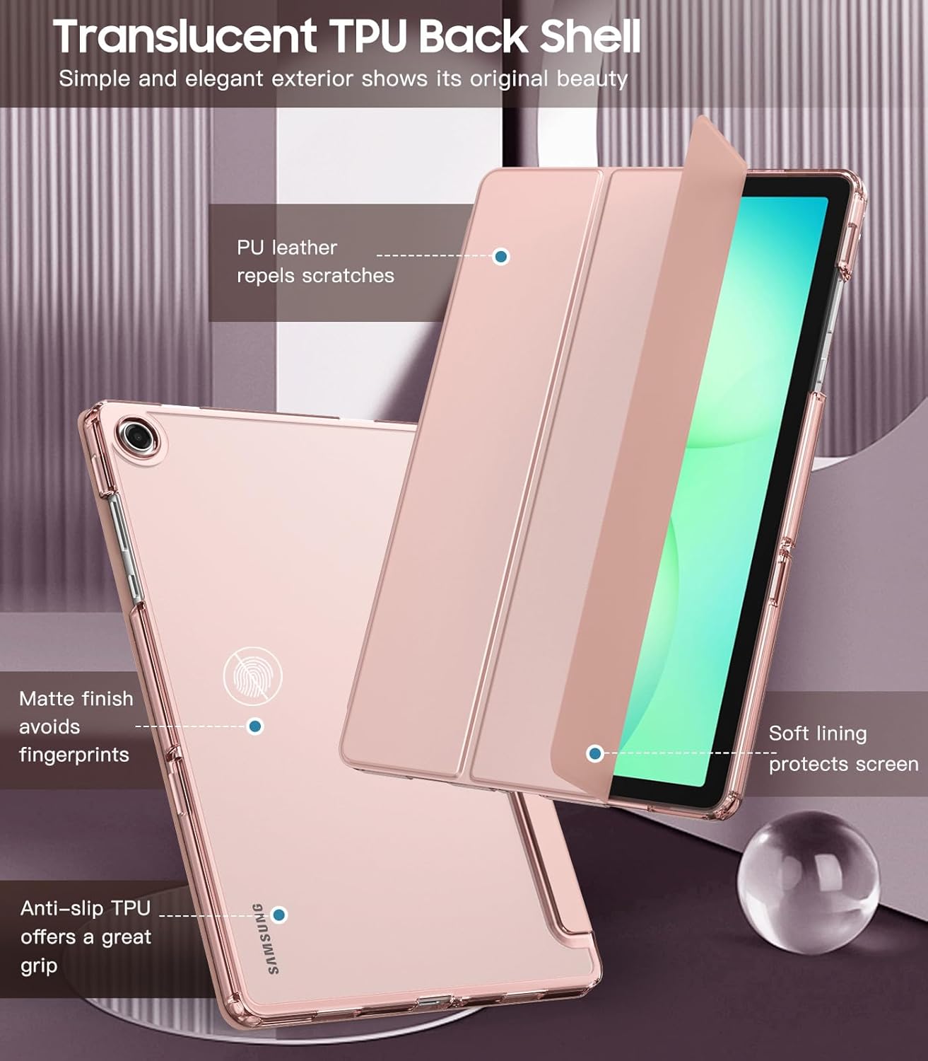 Premium Material: This Galaxy Tab A11 Plus/A9 Plus case is made of premium PU leather exterior, soft microfiber lining, and flexible TPU back to provide protection against scratches, shocks, drops, and impacts. It is convenient for you to see the tablet icon with the frosted translucent back cover