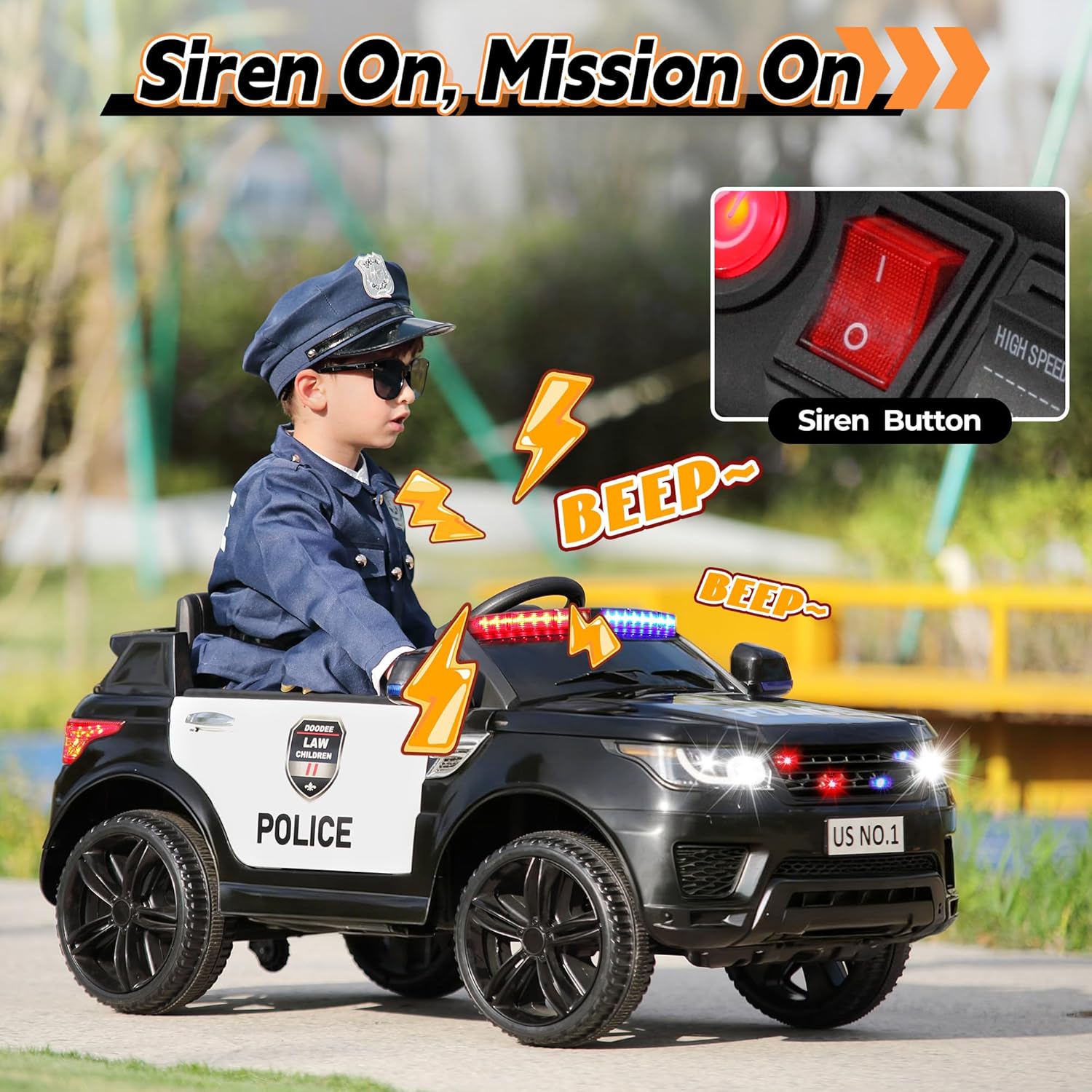 🚓【Best Gifts & Quality Assurance】Featuring sirens, speakers and flashing police lights, it gives children the most realistic experience of driving a police car and fulfils their dreams of becoming a police officer.We are committed to product quality . We promise to provide 1-year 100% quality assurance , aiming to offer you the best products and services . If you have any questions , please feel free to contact us, we will be online 24 hours!