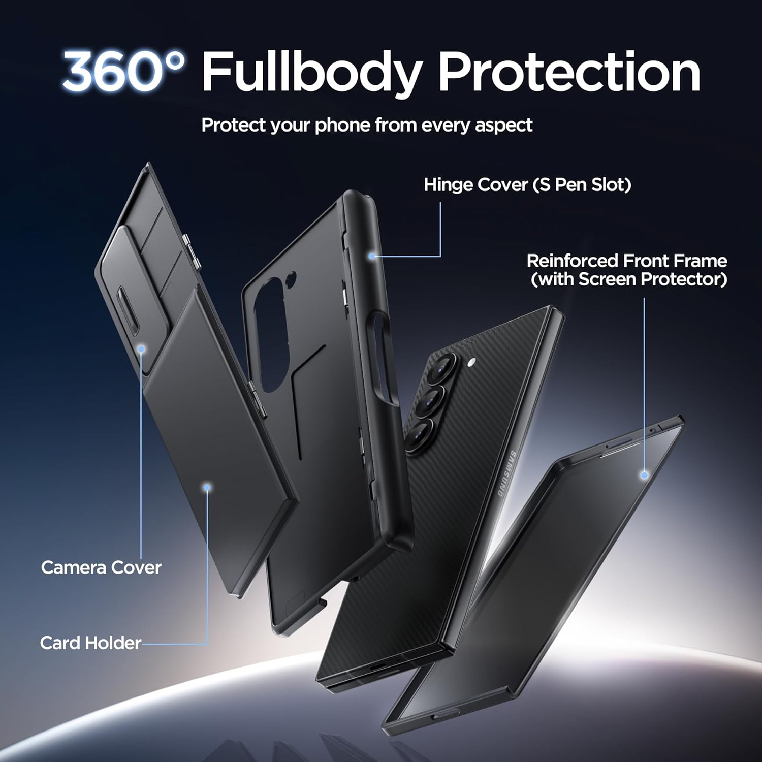[Military Heavy Duty Drop Protection] This Galaxy Z Fold 6 case consists of a hard PC back cover and a TPU shock absorbing bumper frame, with a dual-layer shockproof and rugged construction that can can perfectly protect your phone from heavy drops and collisions. The 2mm raised screen edges and camera slider resist everyday impacts and wear and tear, providing strong protection for your Galaxy Z Fold 6