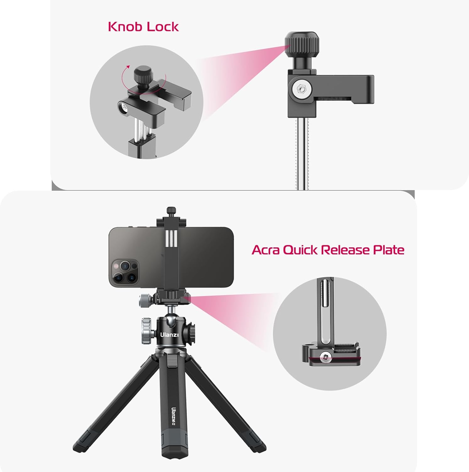【Hidden Cold Shoe Mount 】 With Hidden Cold Shoe Mount Design,You can Mount the Video Microphone and Led Video Light or a Gopro on the Top of Phone Mount