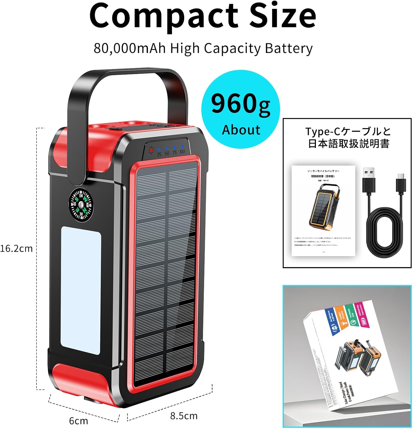 【Solar Panel Perfect for Outdoor Enthusiasts】:80000mAh Solar Power Bank Super Large Capacity.Let You Get Rid of The Anxiety About Battery Electricity Anytime,Anywhere. Built-in 2 LED Flashlights with 3 Modes (lighting/ flashing/ SOS), Which Can Be Used As Camping Lamp, Emergency Lamp And Rescue Signal Lamp. Equipped with Solar Panel, Just Hang It on Your Backpack to Get Recharge via Sunlight. It’s Perfect for Outdoor Activities, Like Camping, Hiking And Other Emergencies.