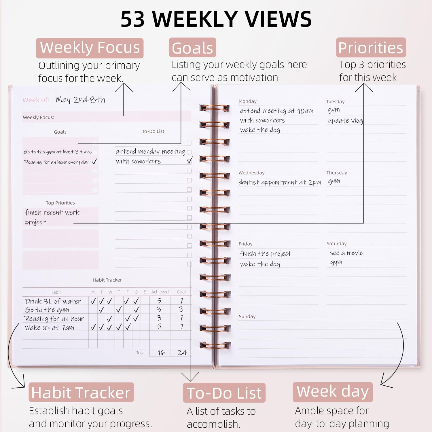 Weekly Planner – Weekly view pages provide ample writing space for detailed planning and tracking of appointments, ideas, habits and to-do lists for each day of the week.