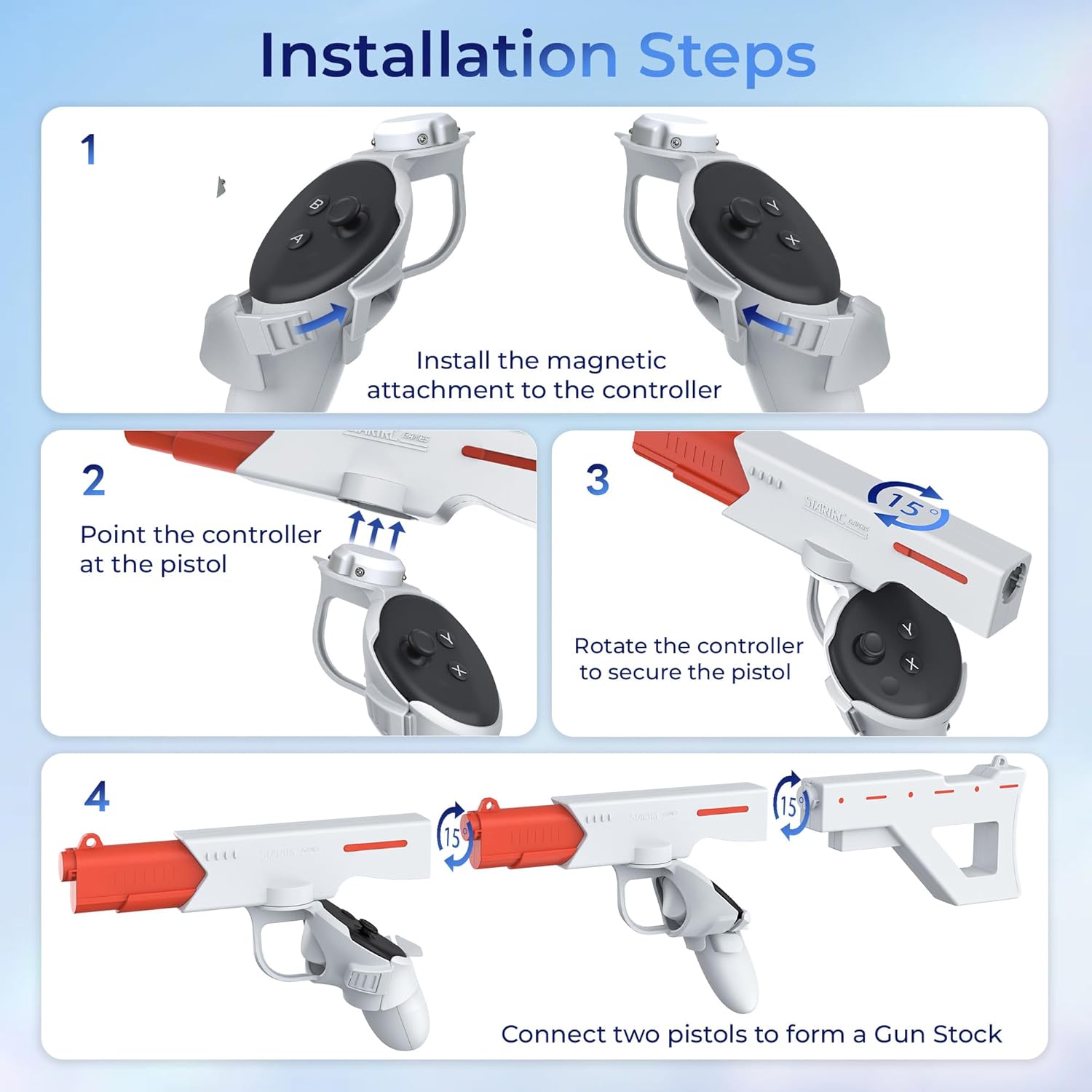 2-in-1 VR Gun Stock: There are two different combinations of the controller grips for Oculus Quest 3/Quest 3S, allowing you to seamlessly switch between rifle and pistol as VR gaming modes needed.