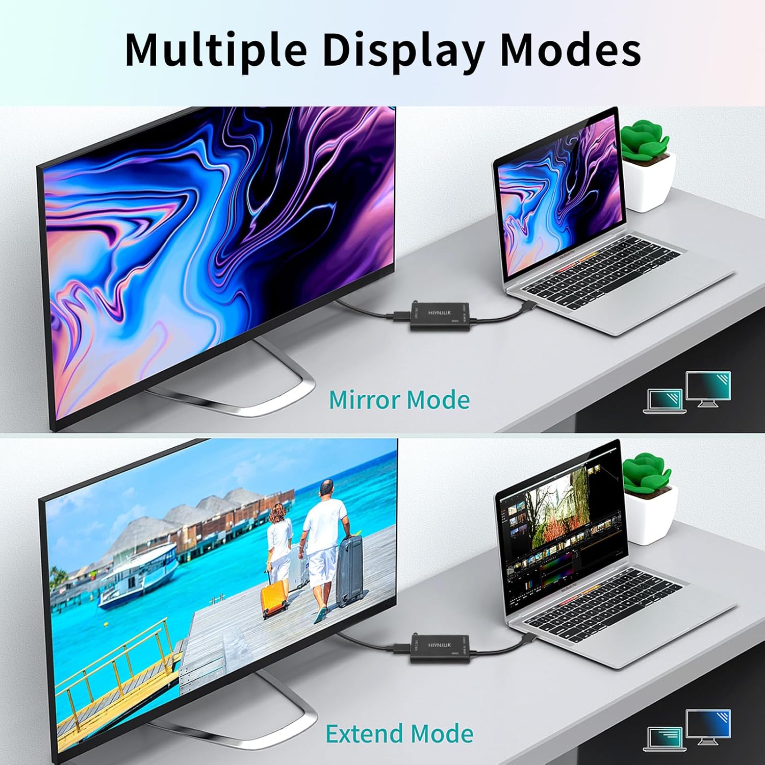 【Two Working Modes】Supports the following two modes, which will automatically switch based on the request from the connected USB-C device. Some USB-C monitors may also allow manual selection of the working mode. 1.High Resolution:4K60Hz+USB2.0,supporting RGB/YUV444. 2.High-Speed Data:4K30Hz+USB3.0,supporting RGB/YUV444. Note:USB-C monitor need to support both video and USB data transmission in order to achieve the two working modes mentioned above. Some USB-C monitors only support video transmission and do not support USB data transmission.