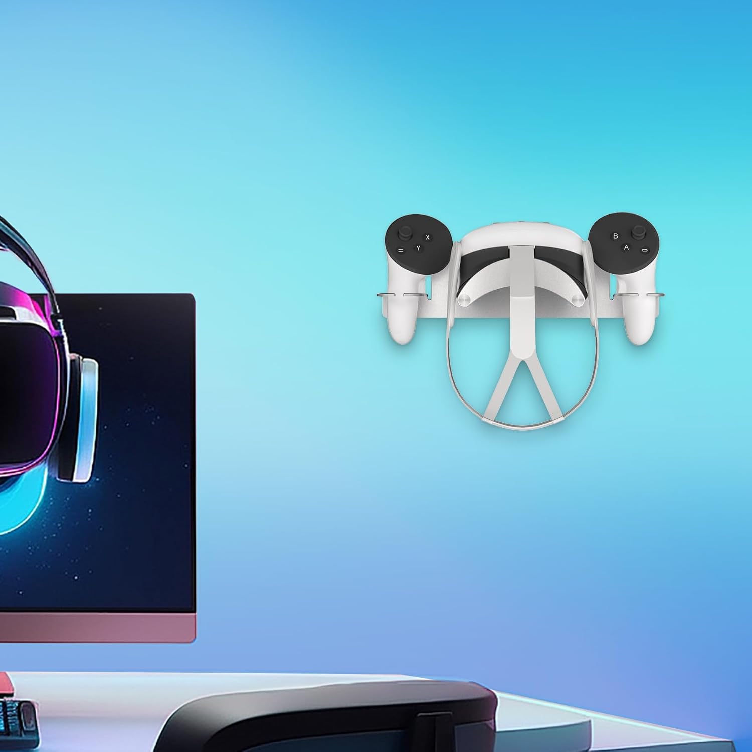 【Space Organizer】The Quest 3 Quest 2 Quest 3S VR wall stand holder offers a clean and tidy gaming environment. It saves your desk space while keeping your devices neatly organized, without cluttered desk. Let you enjoy an organized gaming area.