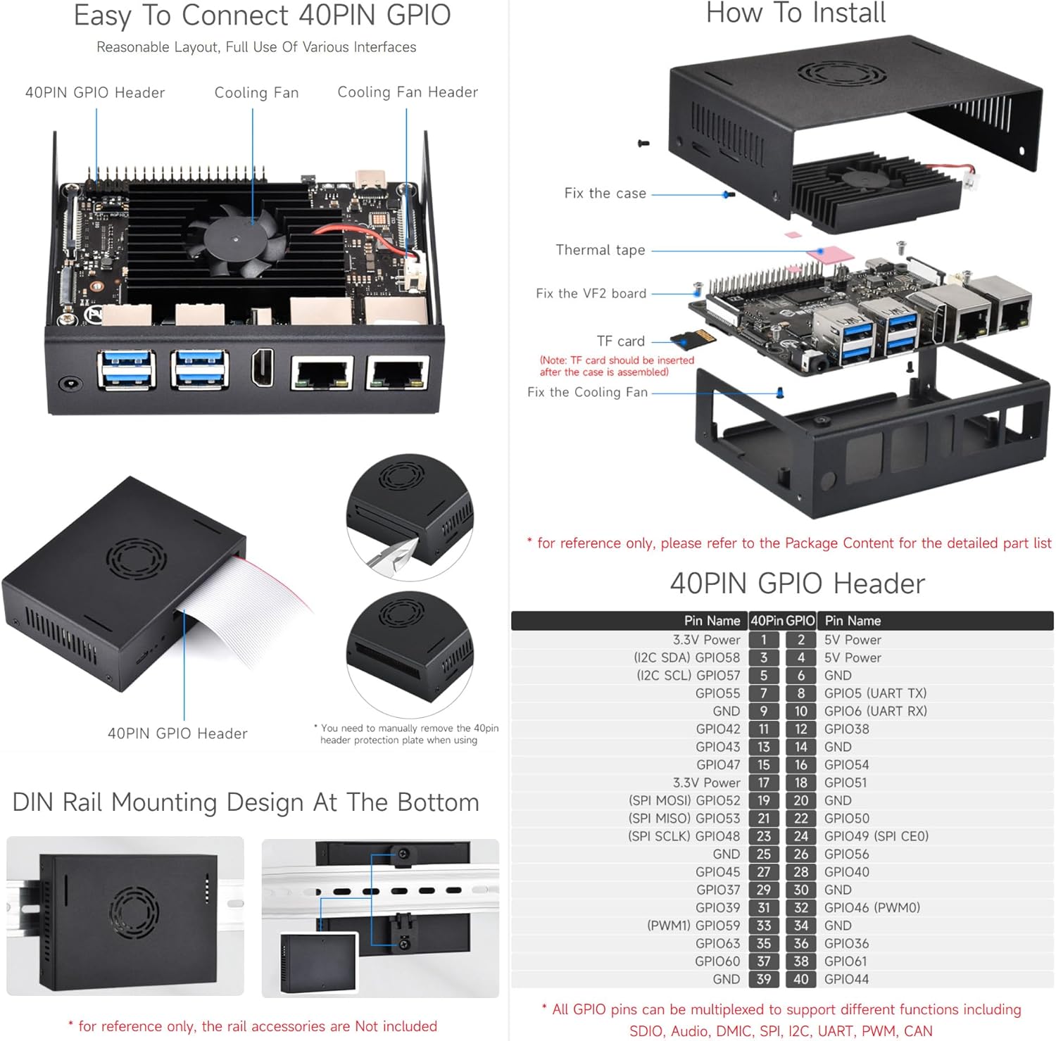 Supports 4K@60fps and H264/H265 multi-stream video decoding, 1080p@30fps and H265 multi-stream video encoding。 Onboard 40PIN GPIO header, compatible with the pinout of Raspberry Pi series boards。 Provides wide software compatibility including support for Debian