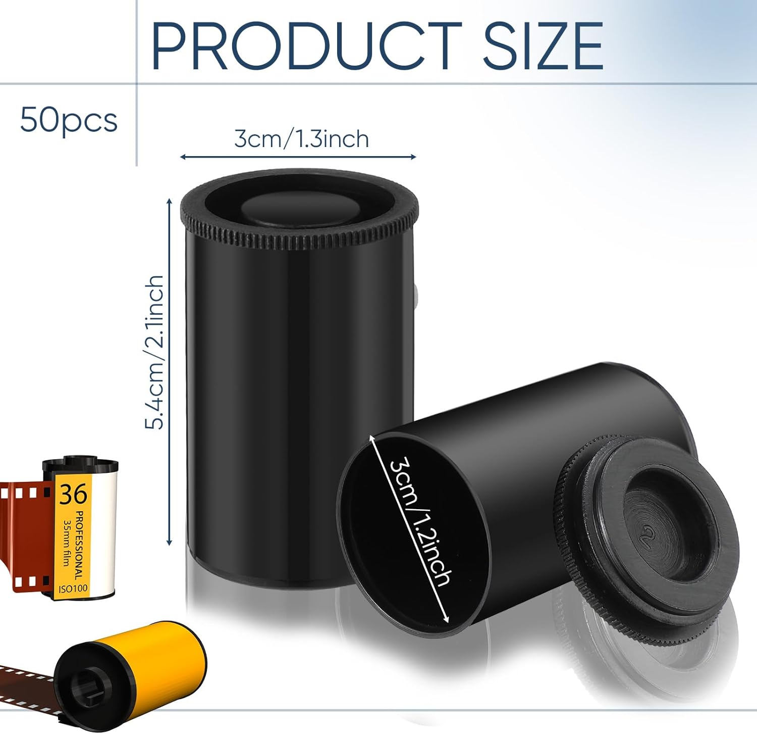Convenient Size: the film container is designed with practicality in mind; With an outer diameter of 1.3 inches and an inner diameter of 1.2 inches, it can facilitate easy loading and unloading of film; The canisters also have a height of 2.1 inches, ensuring enough room to adequately secure film inside