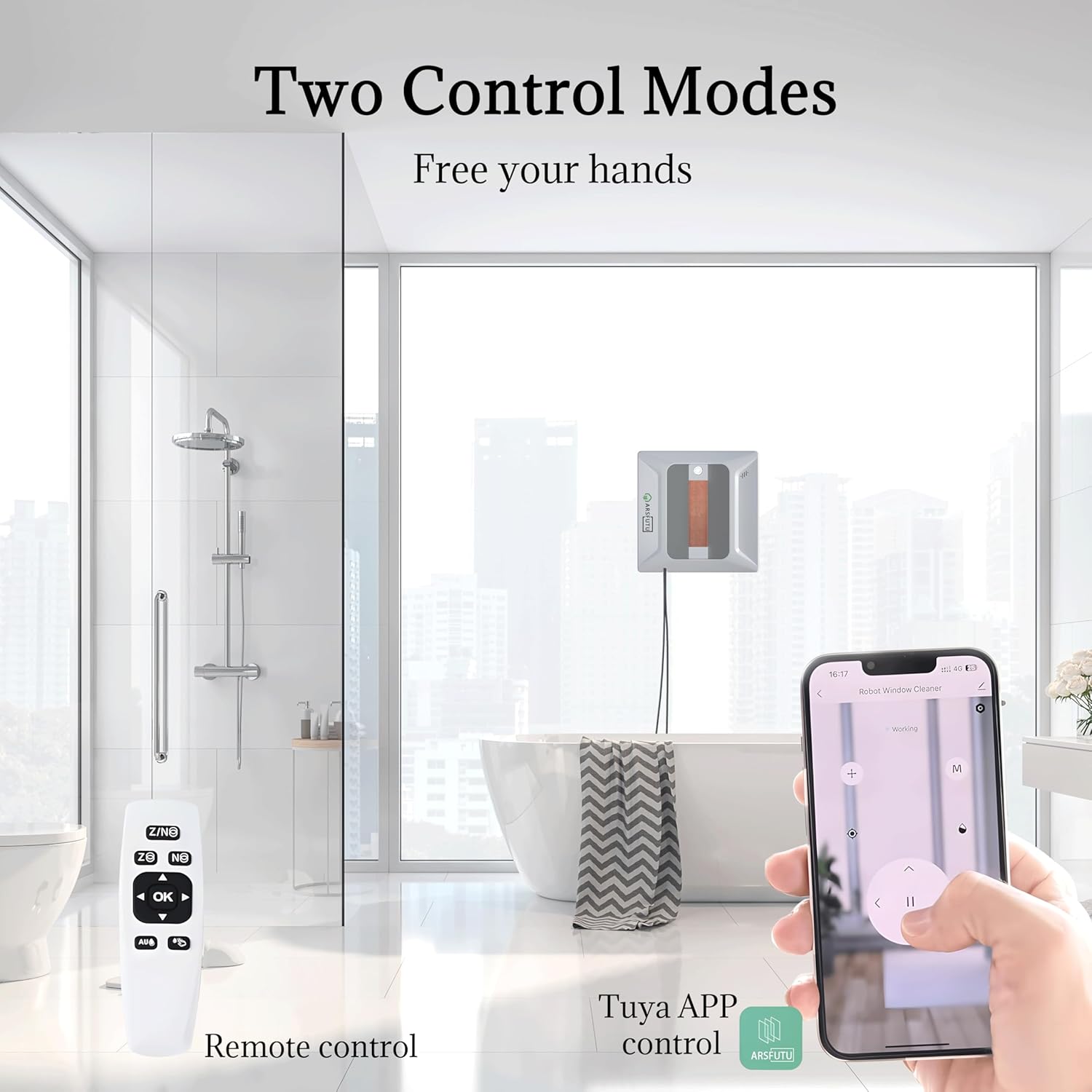 Perfect for High-rise Windows: The robot is specifically designed for use on high-rise windows. With a powerful suction system and a built-in 650mAh battery, it stays securely attached to the glass for over 35 minutes even if power is lost, preventing accidental falls. The included safety rope, which can support up to 150kg, adds an extra layer of security.