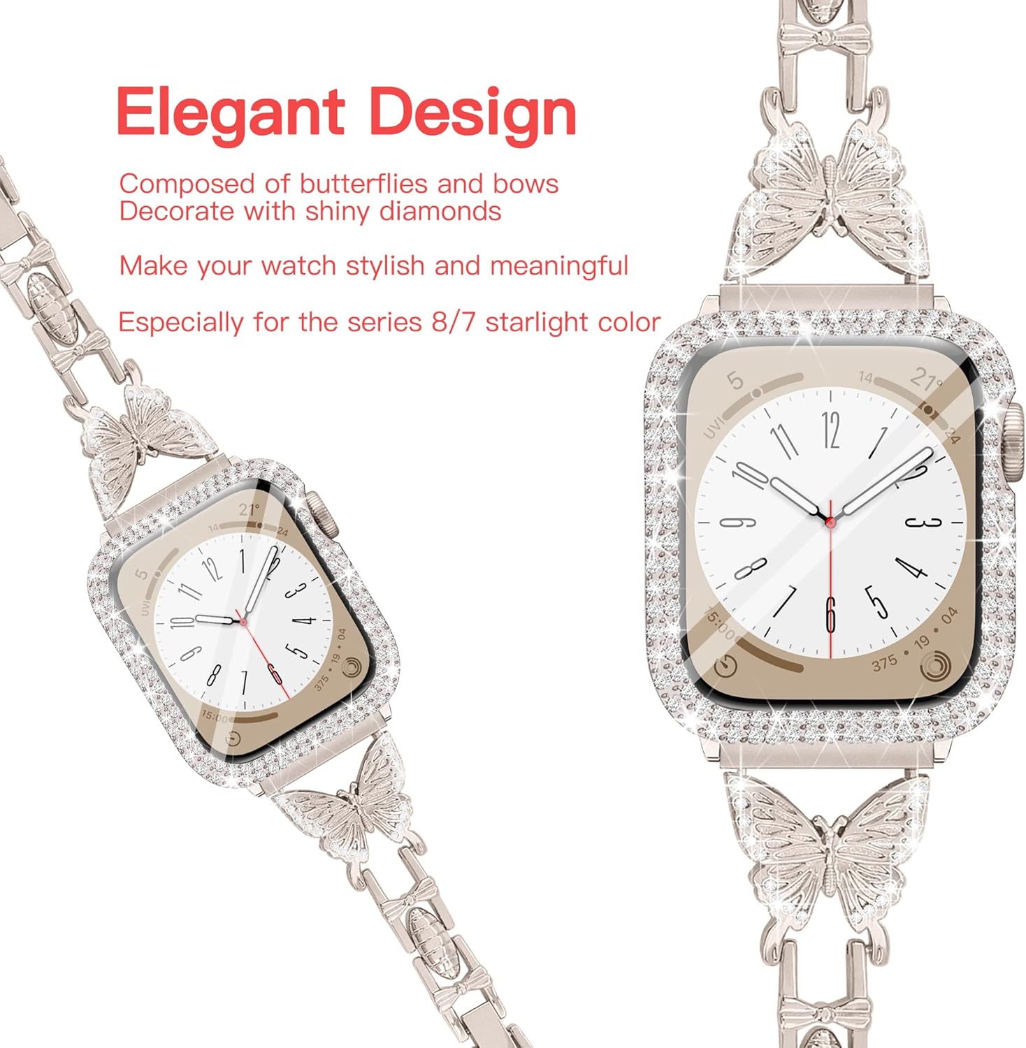 [Pretty Butterfly and diamond]: The Butterflies on the starlight apple watch band are exquisite, pretty and shiny. These will absolutely bring you lots of compliments about good taste.