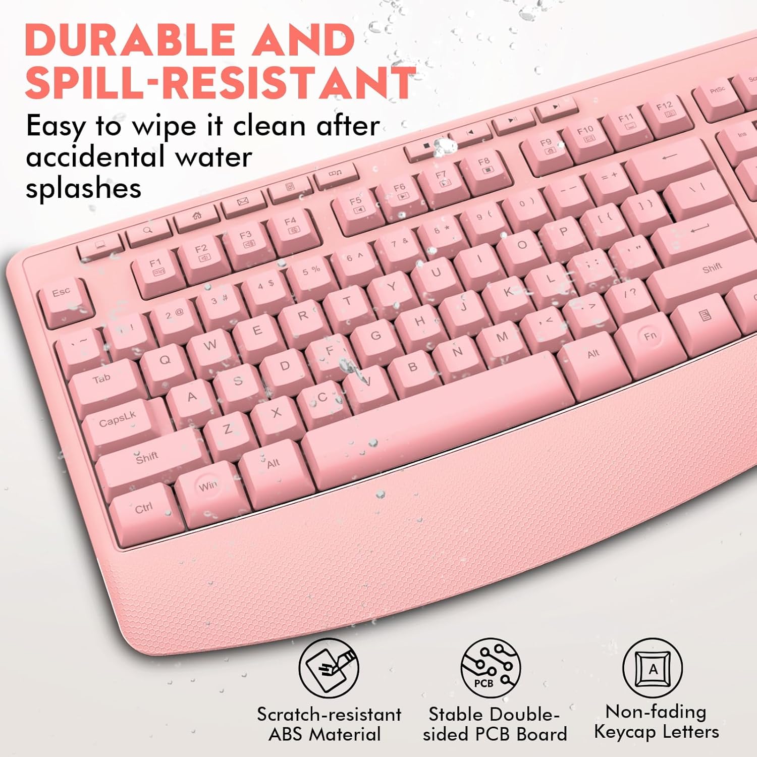 【SPLASH-PROOF DESIGN】: ABS injection molded, stable structure. The panel has built-in a waterproof conductive membrane and multiple drainage holes for double protection. Just shake the keyboard, and the liquid can be smoothly drained out