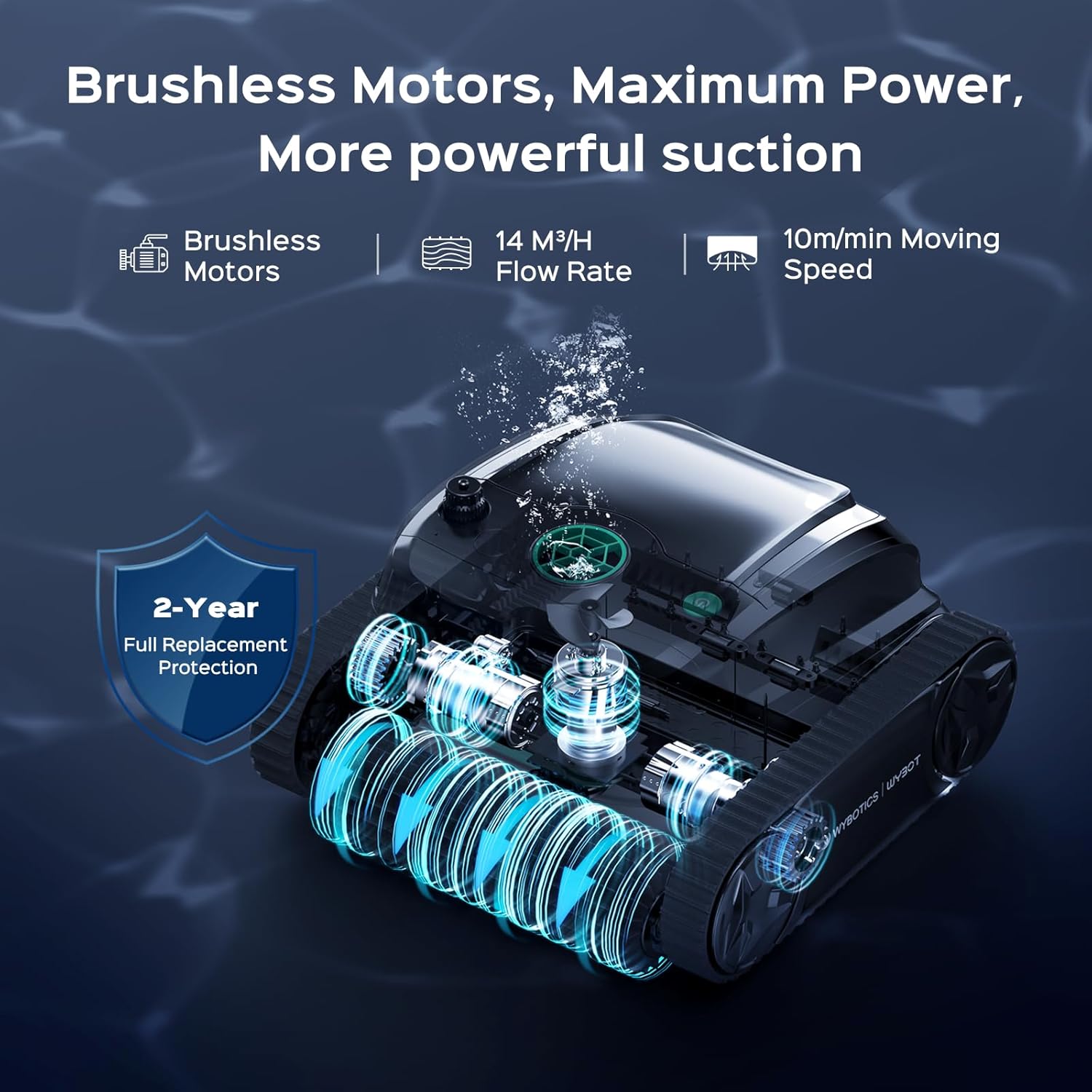 Powerful Suction: Equipped with brushless motor for strong suction and exceptional cleaning power, it effectively captures debris, dirt, and leaves from the pool floor and walls.