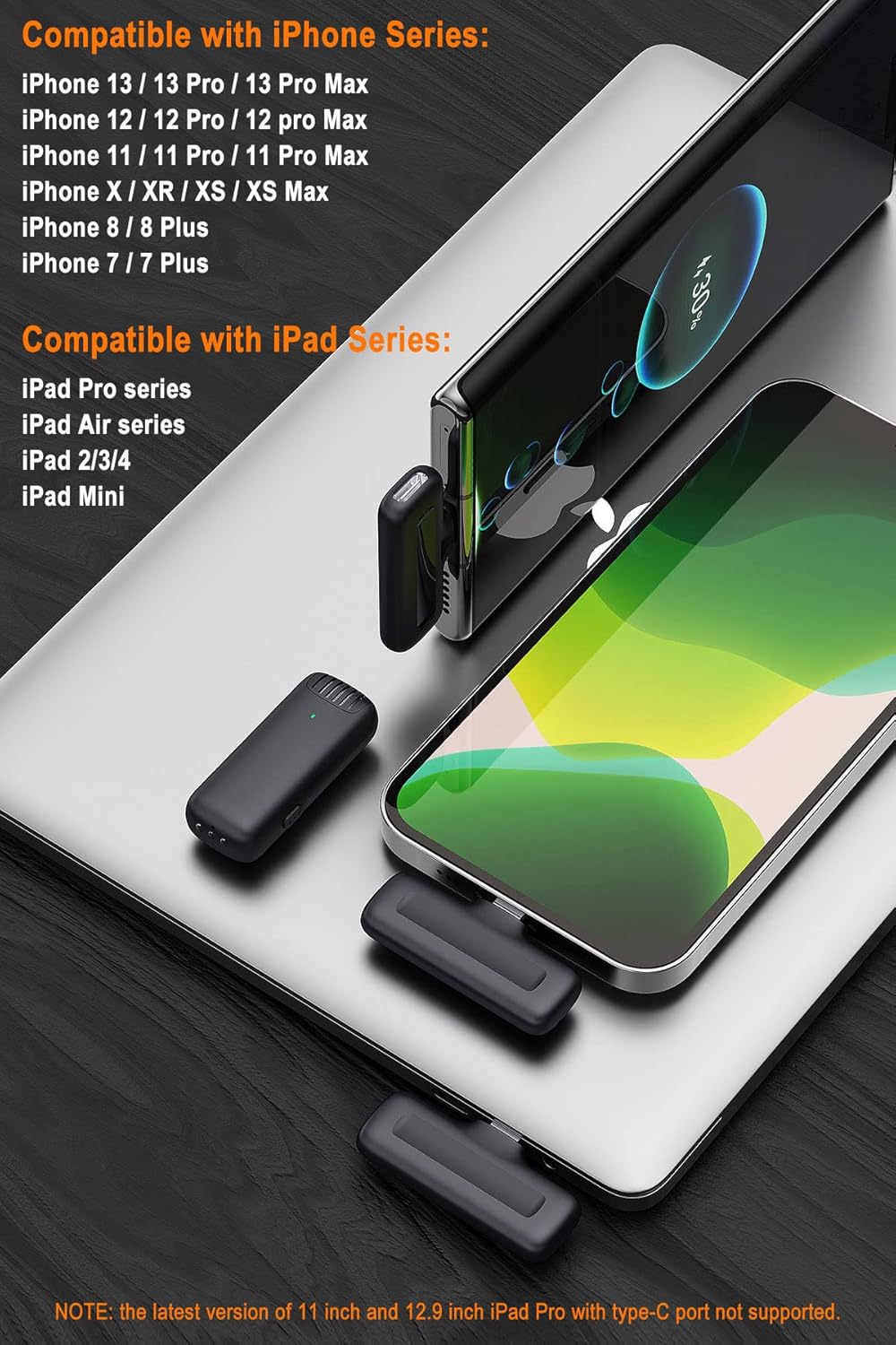 The wireless lavalier microphone is compatible with iPhone/iPad or Type-C Android Devices. If you use our matching USB-C female to lightning male adapter interface, then the lavalier mic with USB-C port will compatible with your iPhone or iPad with lightning port.
