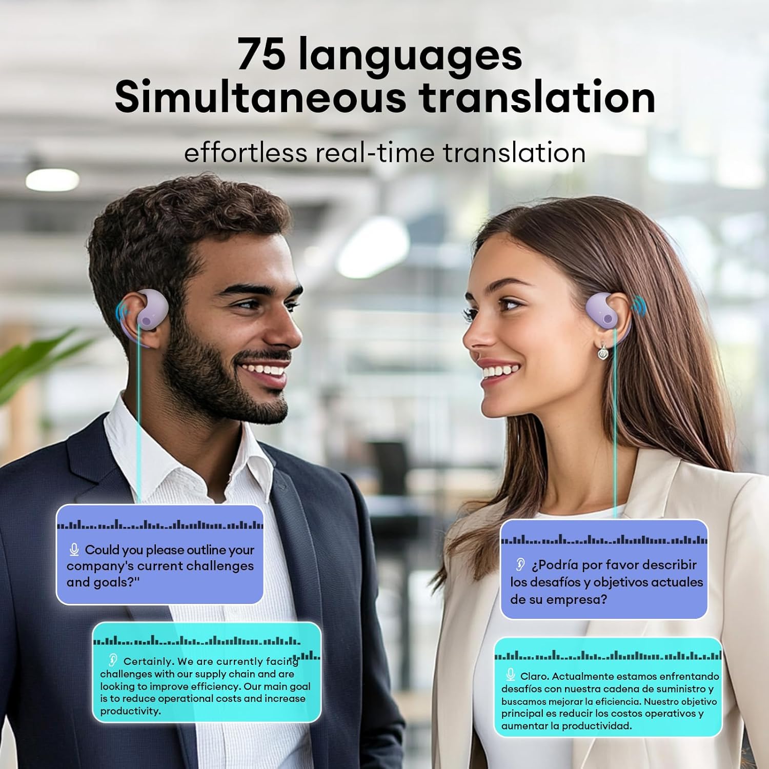 AI Simultaneous Interpretation:Traditional translation requires you to pause between sentences to converse. With our independent translation earbuds real time, as the speaker moves to the next sentence, you can seamlessly hear the translation of the previous sentence. No more delays, just smooth, instant understanding