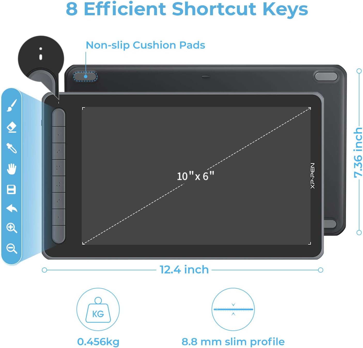 The buttons are buttons, nicely programmable (you can even have them run simple button sequences or execute a few other features to adjust the tablet's behavior or launch a program [or shortcut, which you could have do whatever your mind and scripting talents allow you to do]), and a nice feature on the tablet. I will definitely use them sometimes, but for how I typically work I will likely have my left hand on my keyboard much more often than not. Still a very nice feature to have, and I'm sure I will use it sometimes when I want to do something with just the writing pad on my lap instead of on my desk above my keyboard.