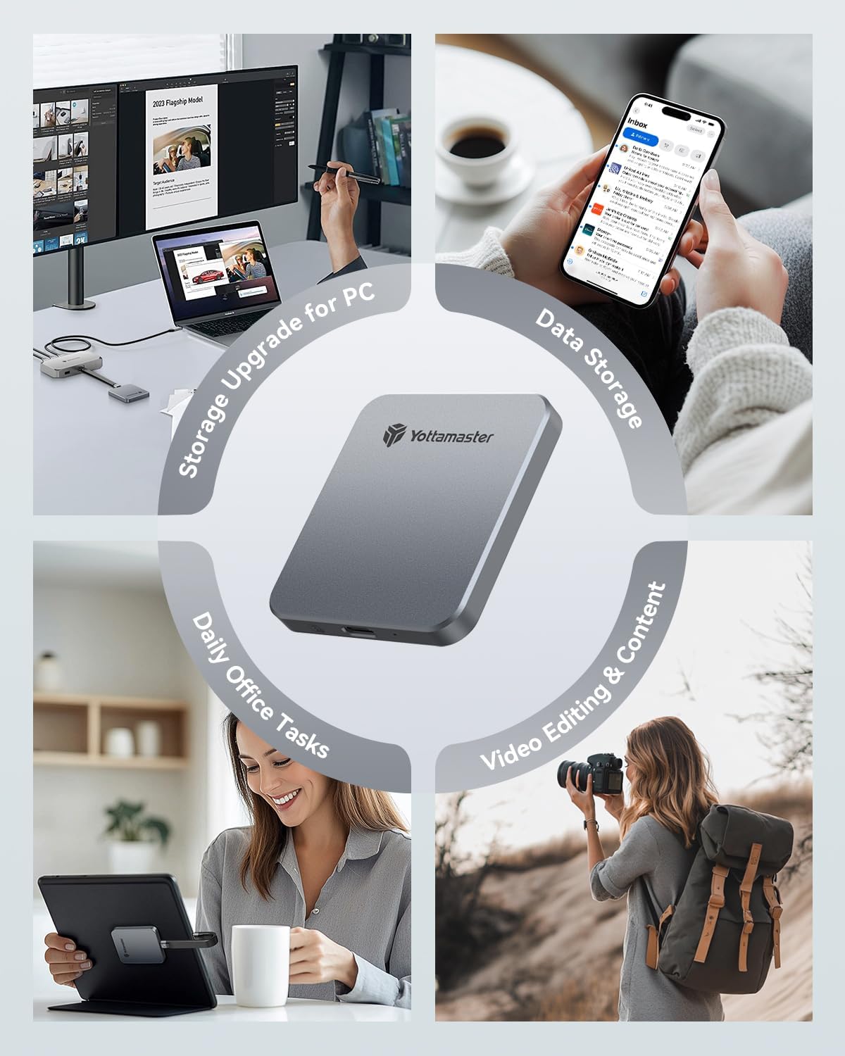 【Multiple Storage Options】The PSSD is available in 1TB/ 2TB capacities, meeting the diverse needs of users. Whether for storing everyday files or hosting large amounts of 4K videos and high-resolution images, the Yottamaster YK40MINI PSSD is the perfect choice.