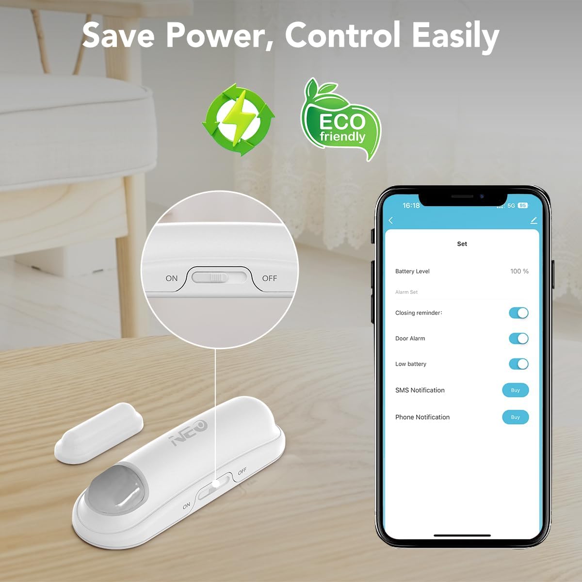 Zigbee Door Sensor 15MM Detection Range: The NEO Zigbee Contact Sensor ensures high precision monitoring with a maximum effective gap of 15 MM between the main and auxiliary units. Even slight openings can be immediately detected, making it an essential zigbee door sensor for secure monitoring;