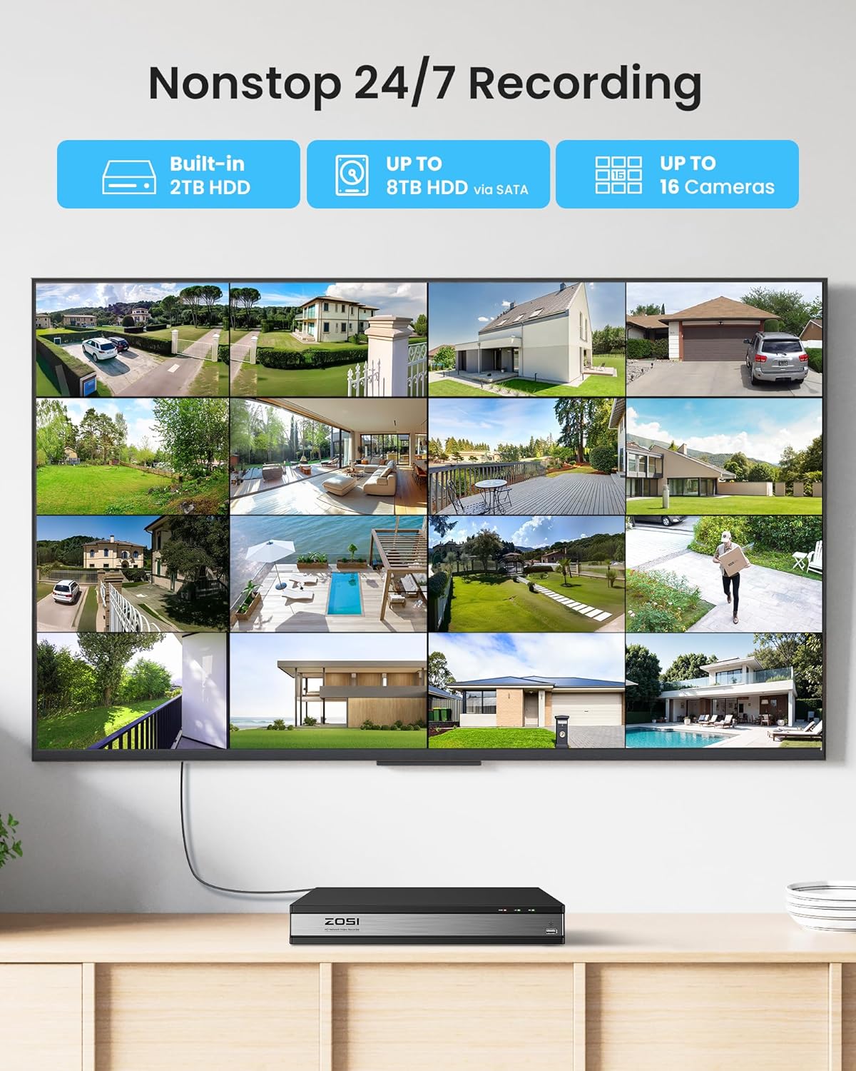 (3). [ Local or Remote Access with Flexible Playback ] __ Access and manage your security system locally by connecting to a monitor, or remotely through the free ZOSI Client software on a PC, tablet, or the ZOSI Smart mobile app. Enjoy flexible playback options, allowing you to review significant footage or funny moments by filtering specific dates, hours, or minutes.